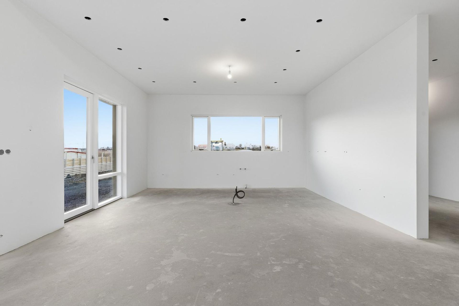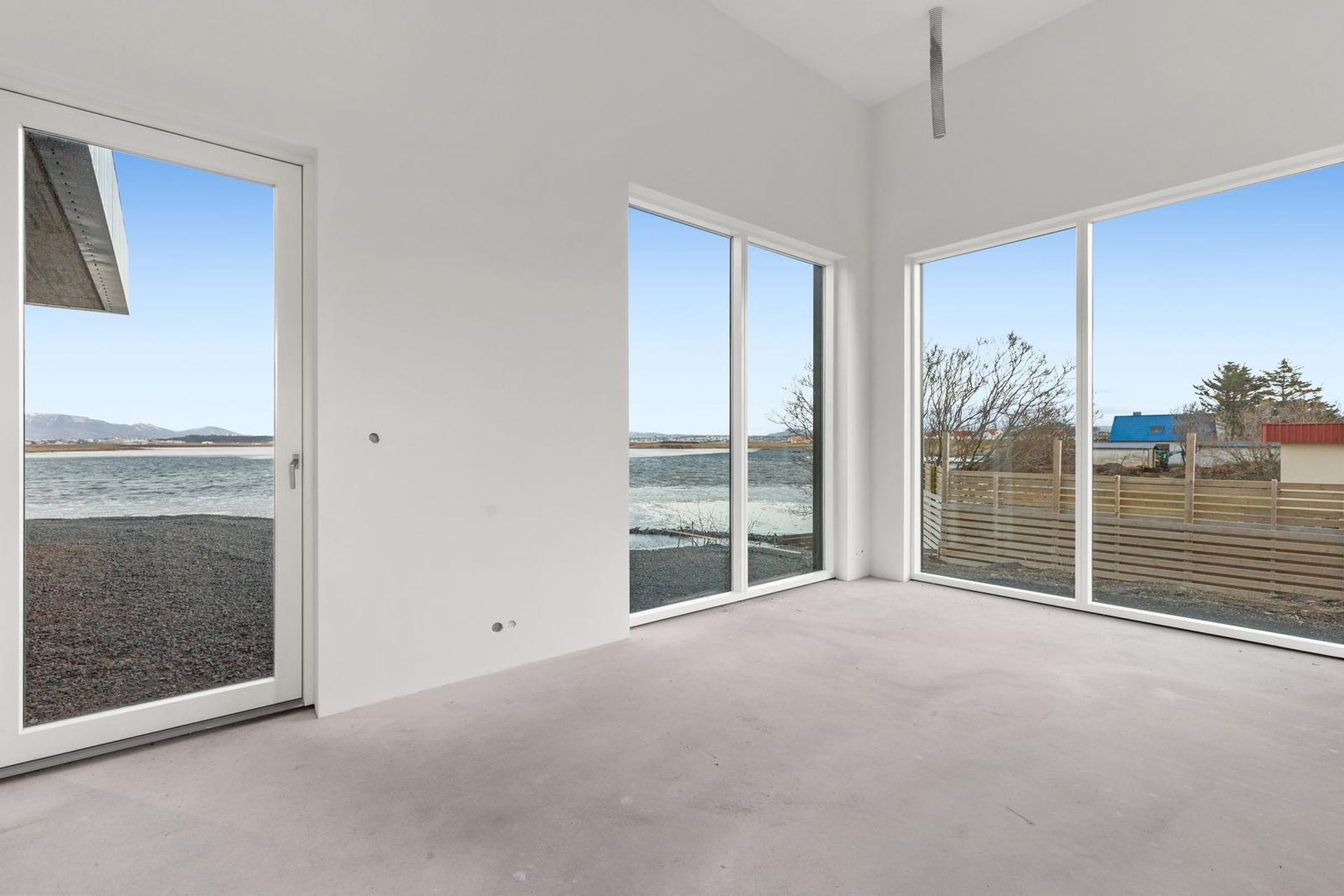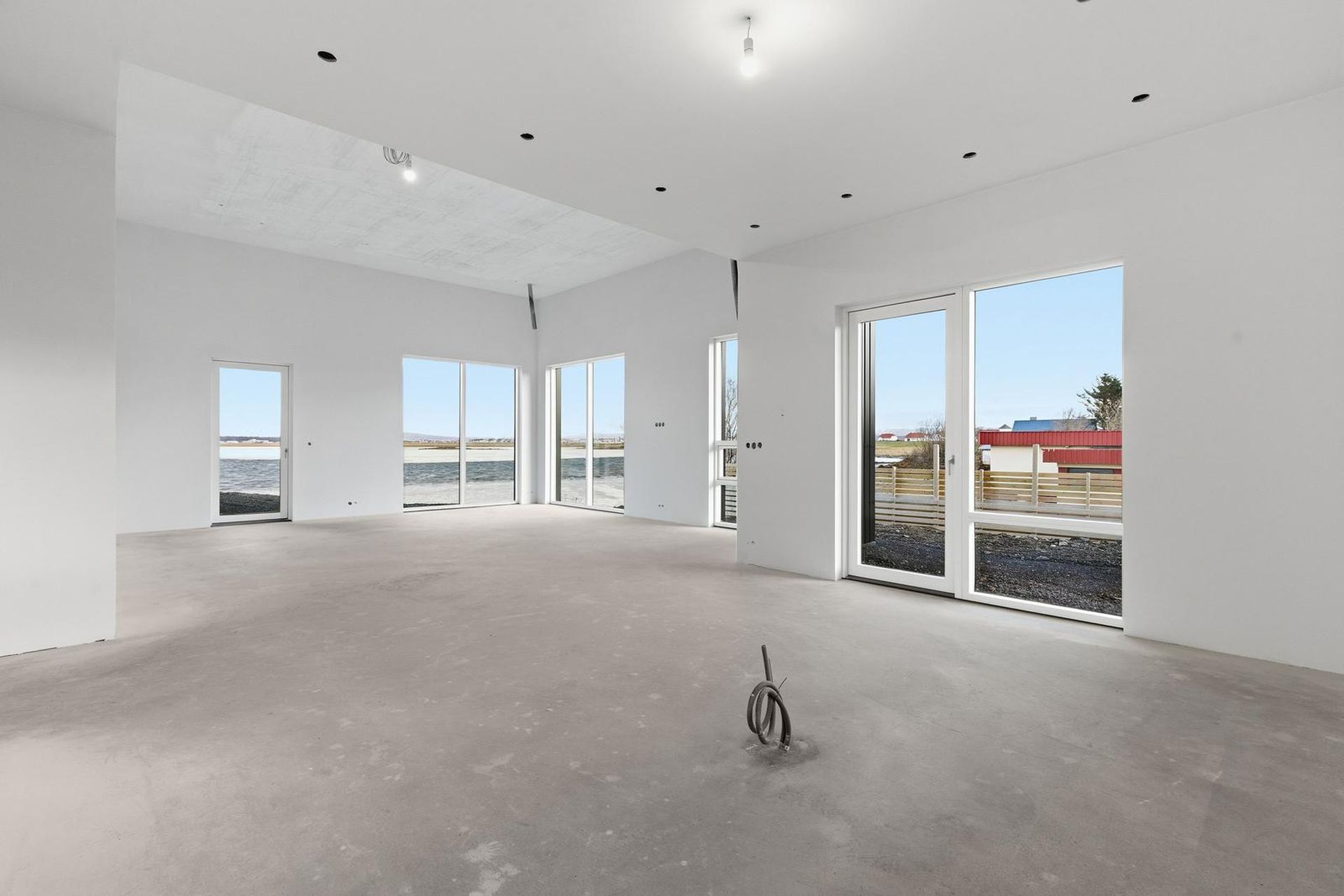 - Staðsteypt hús með áltré gluggum.