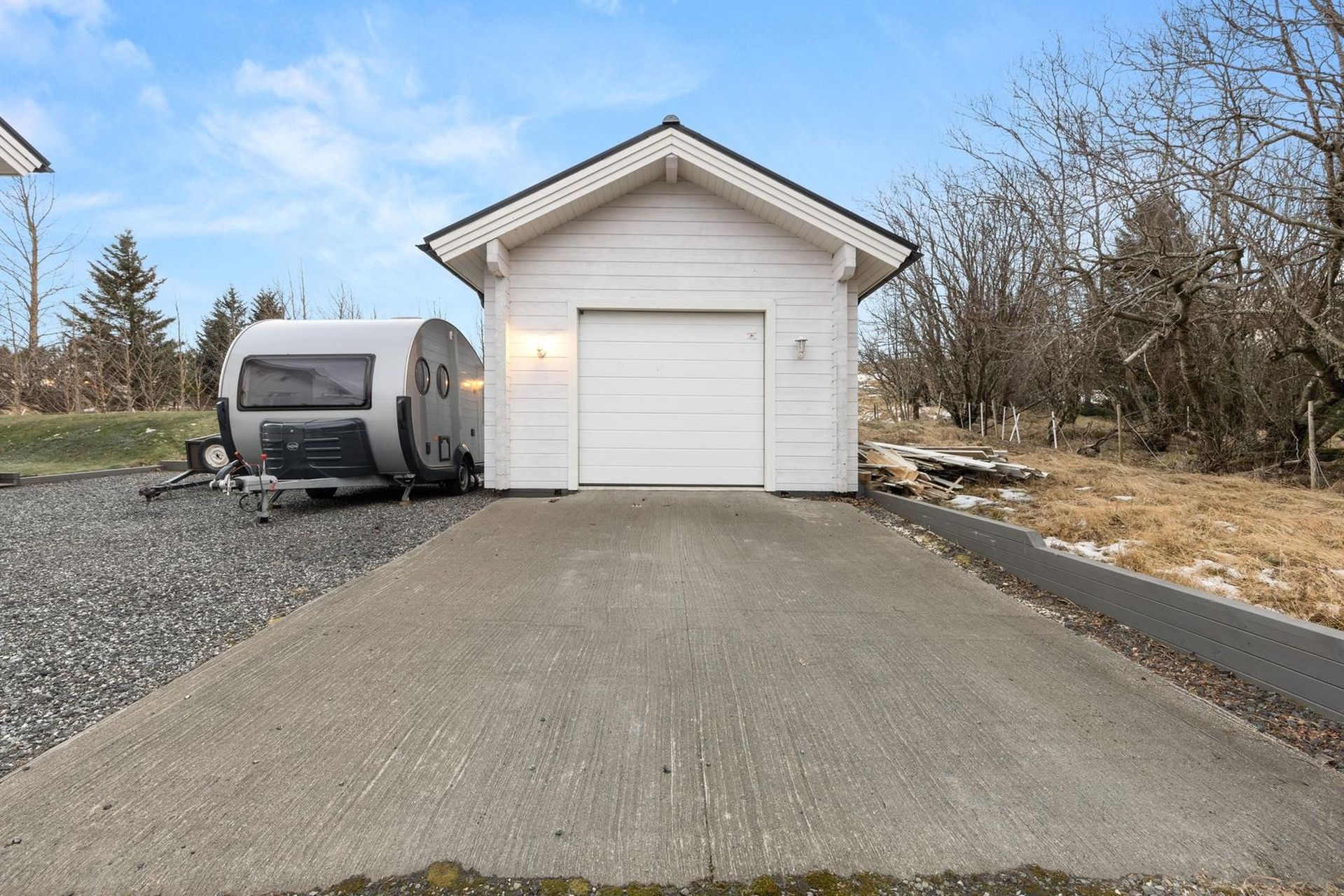 Rúmgóður flísalagður bílskúr með rislofti, heitt og kalt vatn, hurð með rafmagnsopnun, steypt aðkeyrsla með hita í. Stór lóð með veröndum í suð - austur og norð-austur, geymslukúr og leiktæki á lóð, heitur pottur með pottastýringum í appi, fjarstýrður sláttuþjarkur fylgir. Öll útiljós eru með sólarsellu. Varmaskiptir fyrir neysluvatn, kalt vatn upphitað í heitt neysluvatn. Heimild er til að stækka/byggja við húsið þar sem húsið fyllir ekki uppí byggingarreit sbr. samþykki byggingarfulltrúa.
