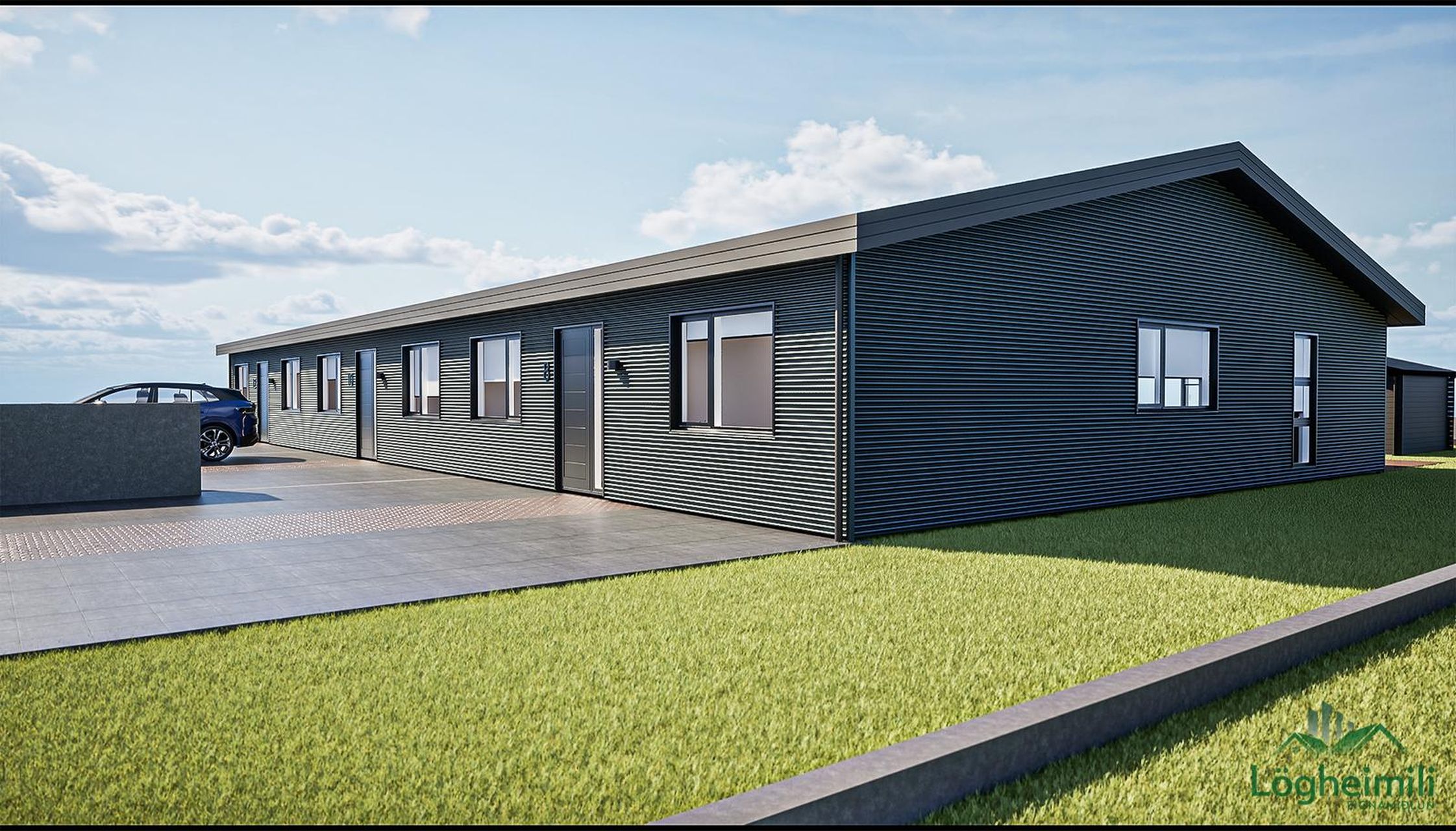 Vel skipulagt og fjölskylduvænt raðhús í nýju hverfi í Garði, Suðurnesjabæ. Við húsið er gert ráð fyrir tveimur einkabílastæðum. Húsið er timburhús, á einni hæð, byggt á steinsteyptum sökkli og klætt að utan með liggjandi báruklæðningu í dökk gráum lit. Húsið verður afhent fullklárað að innan sem utan.