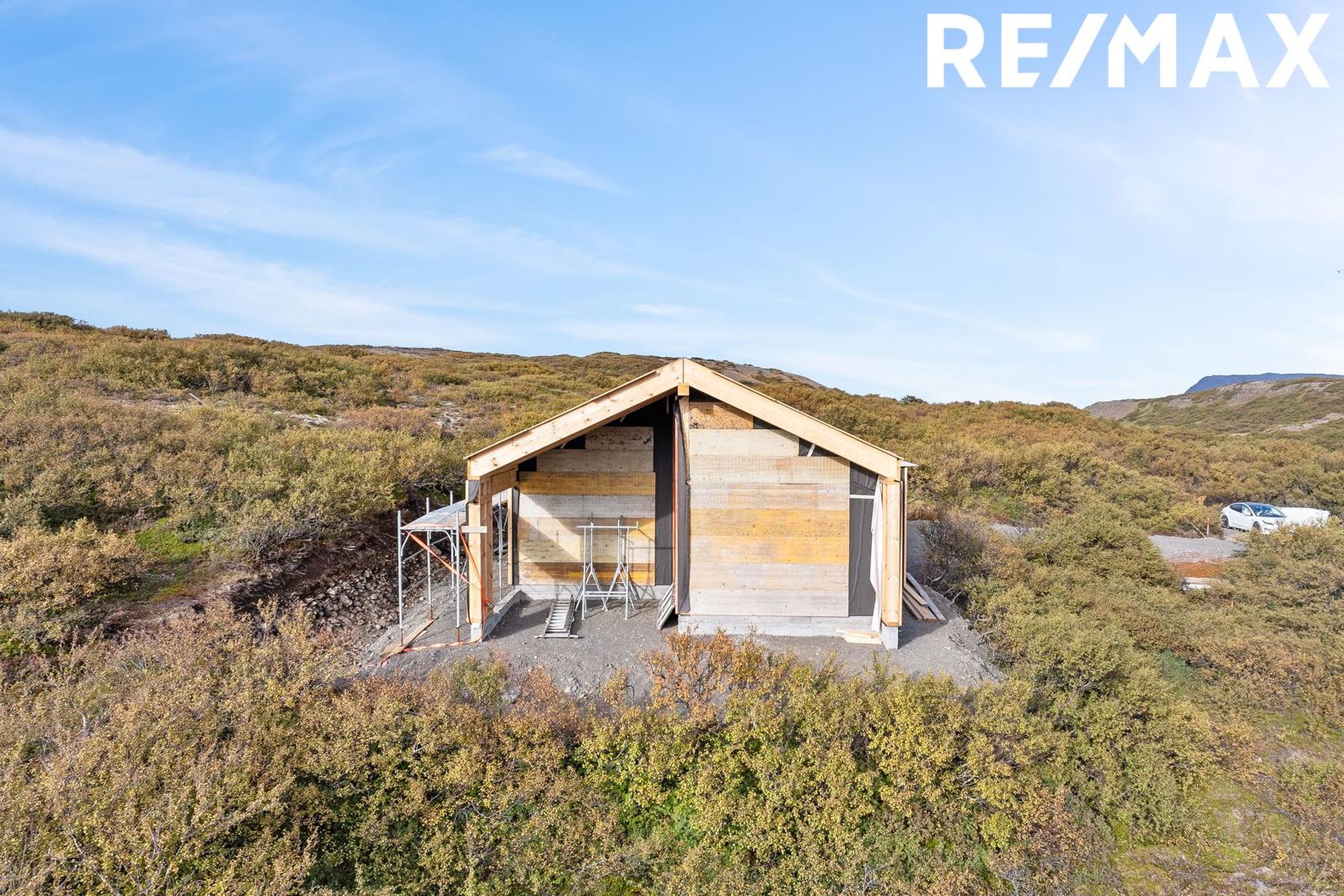 Skilalýsing á eigninni:Húsið verður ekki klætt að utan en lektur komnar fyrir liggjandi járn - klæðningu. Þakjárn er nýkomið á húsið.Húsið verður að hluta einangrað en öll einangrun fylgir með í kaupunun.Gips fyrir innveggi fylgir. Samþykktar byggingateikningar fylgja - burðarþols-, arkítekta-, rafmagns- og lagnateikningar.Kaldavatnið er komið við lóðarmörk. Gluggar og útihurðir fylgja ekki með í þessu verði, tilboð liggur fyrir sem hægt er að fá upplýsingar frá fasteignasala með því að SMELLA HÉR.Búið er að jarðvegsskipta fyrir pallasmíði en pallar fylgja ekki.Drenmöl hefur verið sett við sökkul. Vatnslagnir eru komnar í gólf í eldhúsi og baðherbergi ásamt fráfallslögnum. Húsið er án allra innréttinga og gólfefna.