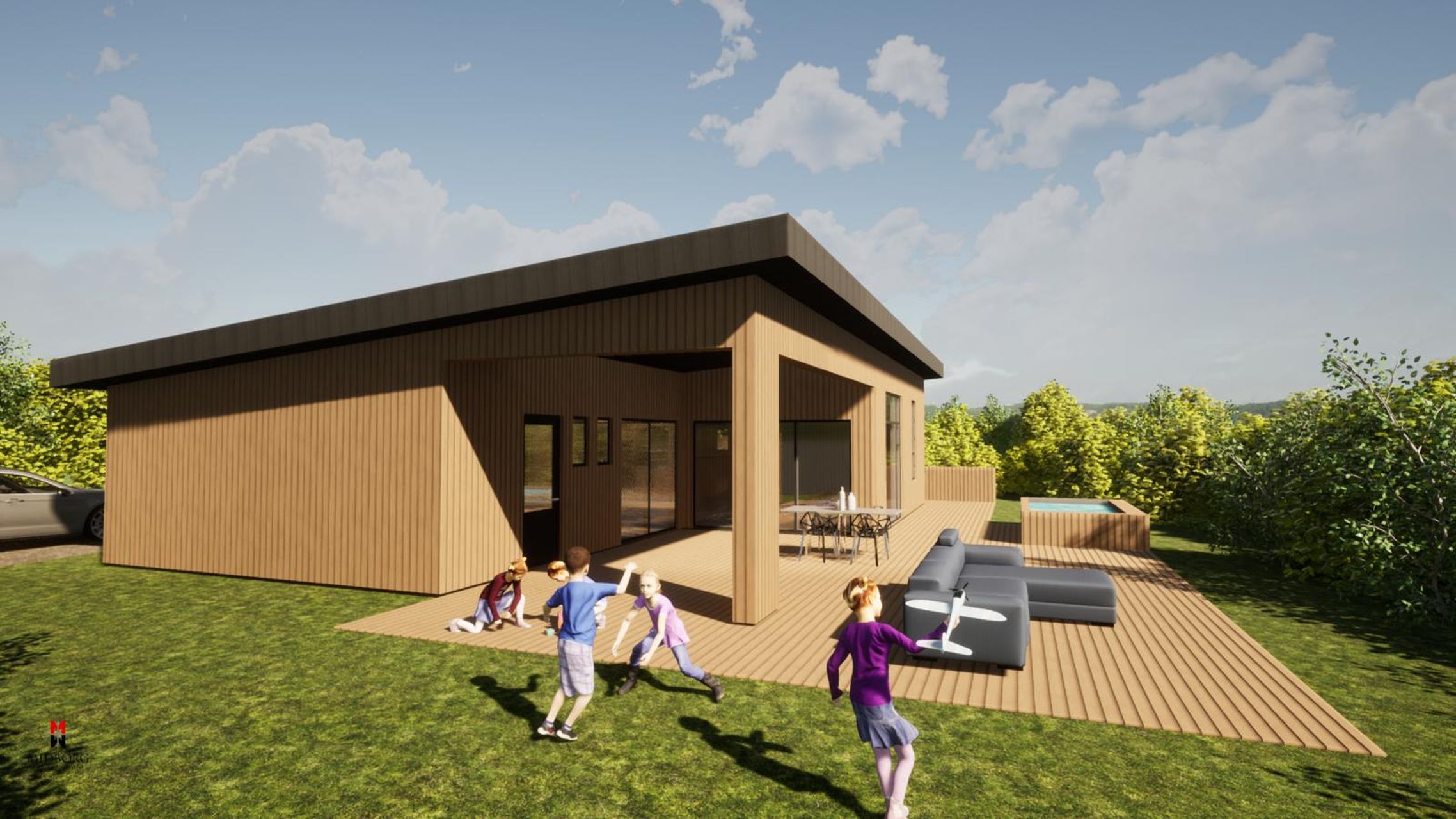Um er að ræða afar glæsilega og vel staðsetta 1.250 fm. kjarri vaxna eignarlóð ásamt púða og samþykktum teikningum af 127,1 fm. frístundahúsi á einni hæð. Húsið er teiknað af teiknistofunni TAG með einhalla þaki og skiptist í forstofu, hol/gang, stofur, eldhús, tvö baðherbergi og þrjú svefnherbergi, þar af hjónasvíta með sérbaðherbergi. Íbúðarhluti hússins er 118,5 fm. og geymsla 8,6 fm. Húsið er teiknað sem timburhús, en einnig er möguleiki á að reisa húsið úr forsteyptum einingum. Gert er ráð fyrir gólfhitakerfi í steyptri plötu. Salarhæð við suðurhlið er ca. 3,9 m. Gólfsíðir gluggar á suður- og vesturhliðum.