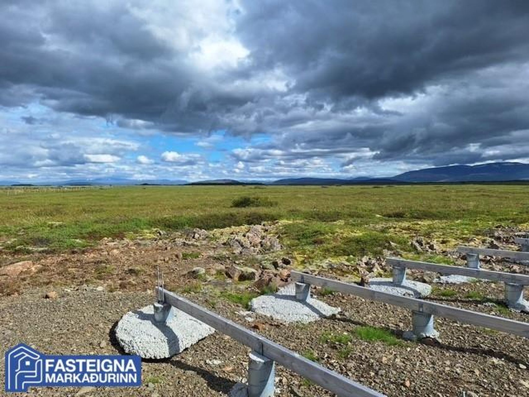 Búið er að leggja veg inn á lóðina og steypa hólka fyrir lítið hús. Rafmagn, vatn og ljósleiðari eru komin að lóðarmörkum.