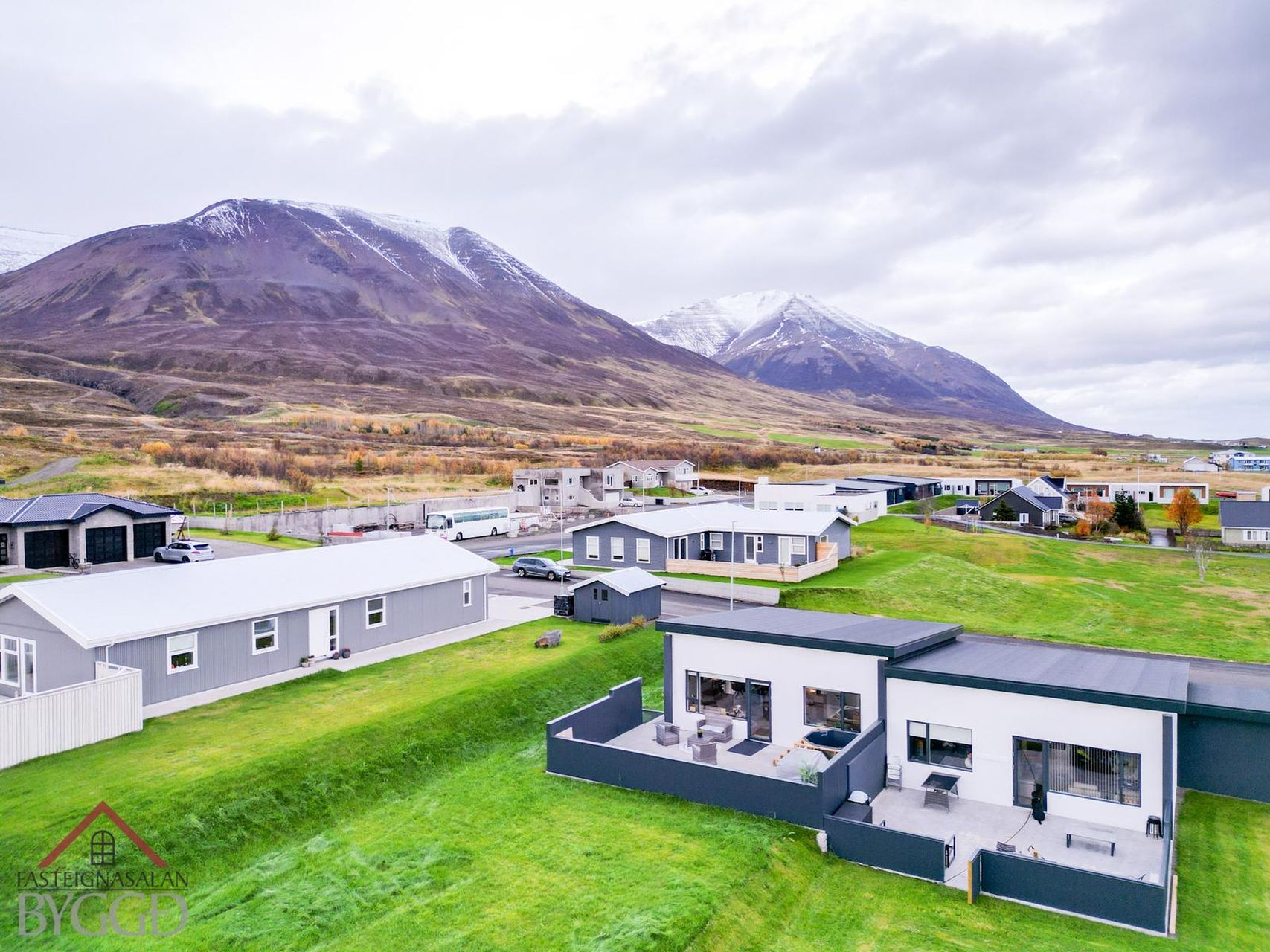 Glæsileg þriggja herbergja endaraðhús íbúð í fjögurra íbúða húsi á flottum stað á Dalvík. Sameiginleg vagna- og hjólageymsla ásamt sérgeymslu er í miðju húsinu. Glæsilegt útsýni og víðsýnt til suðurs af steyptri verönd sem er með heitum potti.