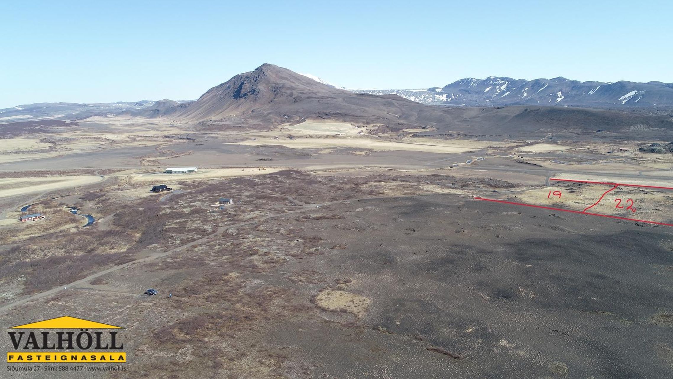 Valhöll fasteignasala, Síðumúla 27, Sími:588-4477 og Ingólfur Gissurarson löggiltur fasteignasali og leigumiðlari, síðan 1989, sími:896-5222, kynna: Eignarlóð 18390 fm með fallegu útsýni á Heklu, Bjólfell, Búrfell, Þjórsárdal og víða um nær og fjær. Rafmagn og kalt vatn á lóðarmörkum. Um 1,5 klst keyrsla er frá Reykjavík, gegnum Selfoss og Hellu, síðan beigt upp til vinstri, ca 1 km í austur frá Hellu, að Gunnarsholti og svo til vinstri (eftir 5-6 km) inná Þingskálaveg (Næfurholt). Þegar farið er að nálgast Bjólfell og flugskýlið sést er beigt til vinstri afleggjara að lóðinni (rétt áður en farið er yfir Höfðalæk) Lóðin stendur þokkalega hátt, með fallegum hraunborgum og gróðri vaxin enda hefur verið borin 600 kg af áburði hvert sumar á lóðirnar (19 og 22) s.l. 3 sumur. Hekluskógaverkefnið er í fullum gangi á þessu svæði og fá lóðareigendur ókeypis birkiplöntur á vorin og haustin í Gunnarsholti til gróðursetningar og því frábært tækifæri fyrir áhugafólk um gróðurrækt og uppbyggingu að gera sér sælureit á einstökum stað.