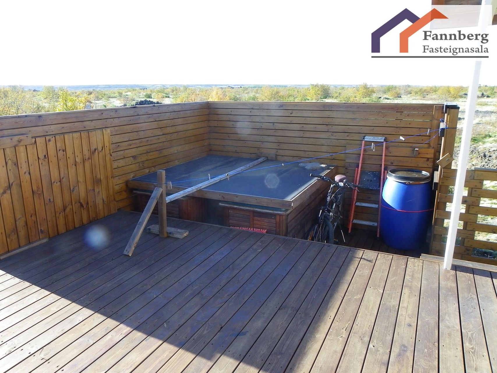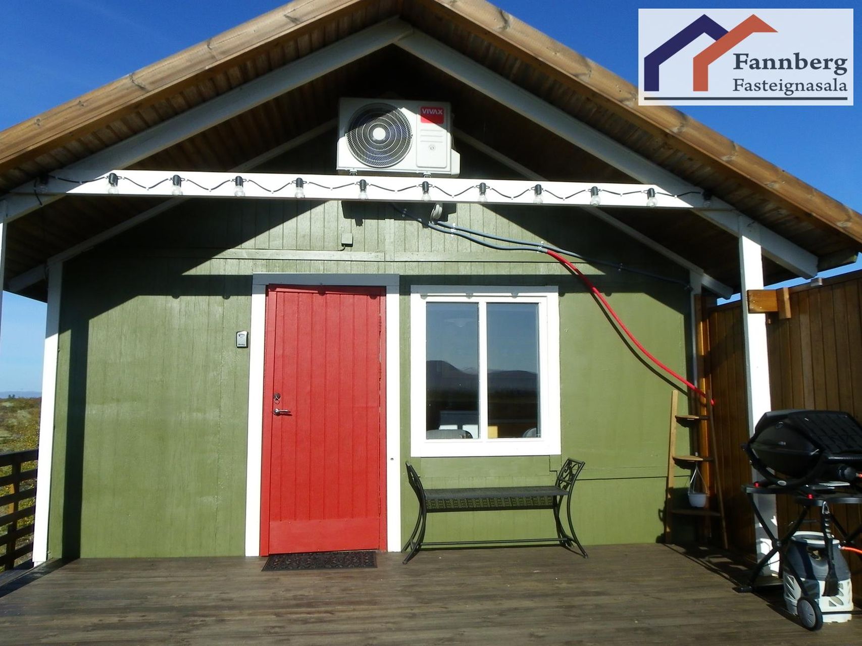 Um er að ræða 32,9 fm sumarhús, sem staðsett er á 6.500 fm eignarlóð í skipulögðu sumarhúsahverfi í Fjallalandi í ofanverðri Landsveit. Birkikjarr er á lóðinni og þarna er víðsýnt og fallegt útsýni, m.a til Heklu og Eyjafjallajökuls. Húsið sem stendur á steyptum bitum, er byggt úr timbri árið 1987 og er klætt að utan með röstuðum krossvið. Við húsið er rúmgóð timburverönd með skjólveggjum og heitum potti. Að innanverður eru veggir og loft klædd með panel. Húsið telur: Sambyggða stofu og eldhús, með parketi á gólfi og ágætri innréttingu. með gaseldavél. Baðherbergi með dúk á gólfi og sturtuklefa. Tvö svefnherbergi með parketi á gólfum. Húsið er kynt með nýlegri varmadælu. Hluti húsgagna getur fylgt með við sölu. Við húsið er malarborið bifreiðastæði. og aðkomuvegur.
