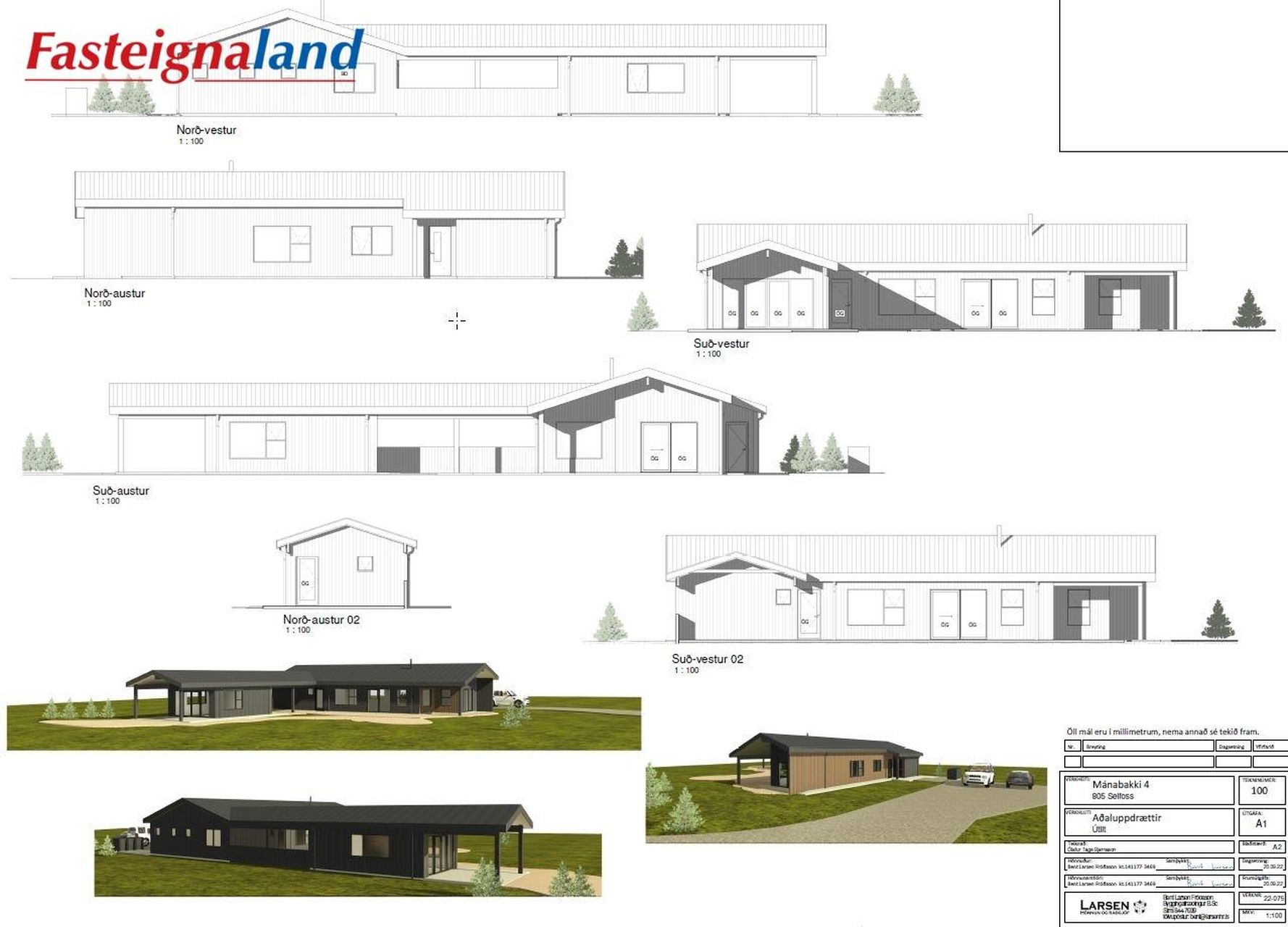 Búið er að láta teikna 149,5 fm hús ásam 39,8 fm gestahúsi.