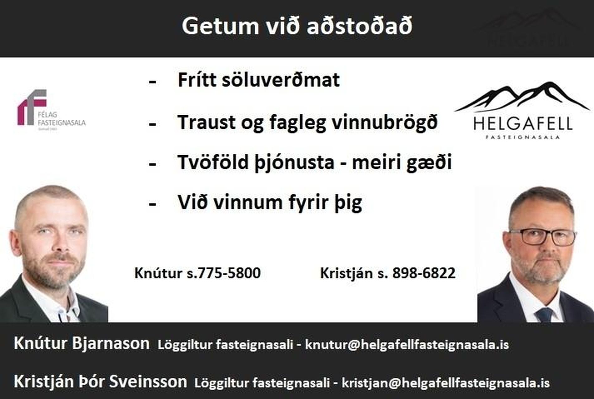 Knútur Bjarnason, löggiltur fasteignasali, s: 775-5800 / knutur@helgafellfasteignasala.is