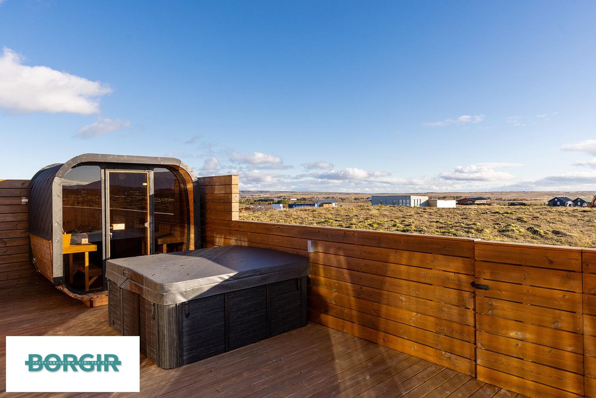 Stór og góður rafmagnspottur er út á palli og einnig 4-6 manna glæsileg gufa þar.