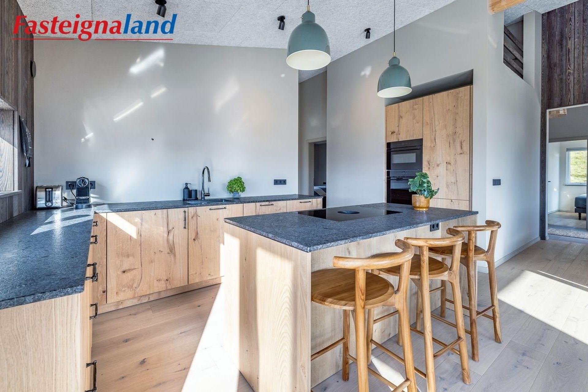 Eldhúsið er með sérsmíðaðri eikar-viðarinnréttingu (Arens) og vönduðum BOSCH eldhústækjum. Tveir bökunarofnar/örbylgjuofn, BORA helluborð með innbyggðum háf, extra hár ísskápur/frysti og innbyggð uppþvottavél. Undirlímdur eldhúsvaskur. Kvarz borðplötur eru í eldhúsi og á baðherbergjum.