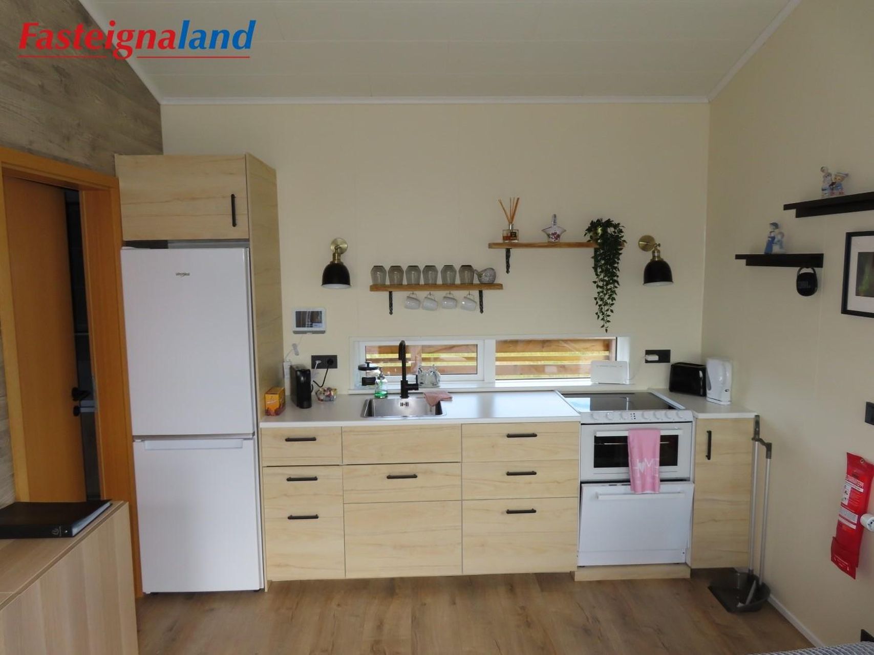 Lýsing á eign nr. 1: Hús skráð gestahús 30 fm. Komið inn alrými/stofu með parketi á gólfi. Herbergi með parketi á gólfi. Baðherbergi með flísum á gólfi og fíbo plötum á veggjum, viðarinnréttingu og „walk in“ sturtu. Eldhús og stofa í sama rými L-laga með góðri lofhæð. Viðarinnréttingu og sambyggðri eldavél með kermik helluborði/uppþvottavél.