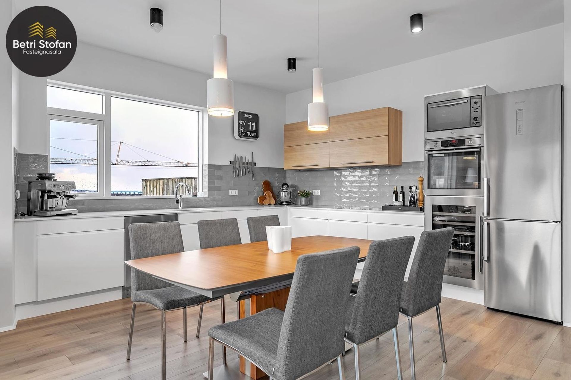 Eldhús og stofa er í einu stóru rými. Eldhúsið er með innréttingu (vínkælir) kvarts borðplata. Úr stofunni er útgengt á 24 fm. svalir með góðu útsýni, möguleiki er að setja svalalokun. Heitur pottur fylgir með.