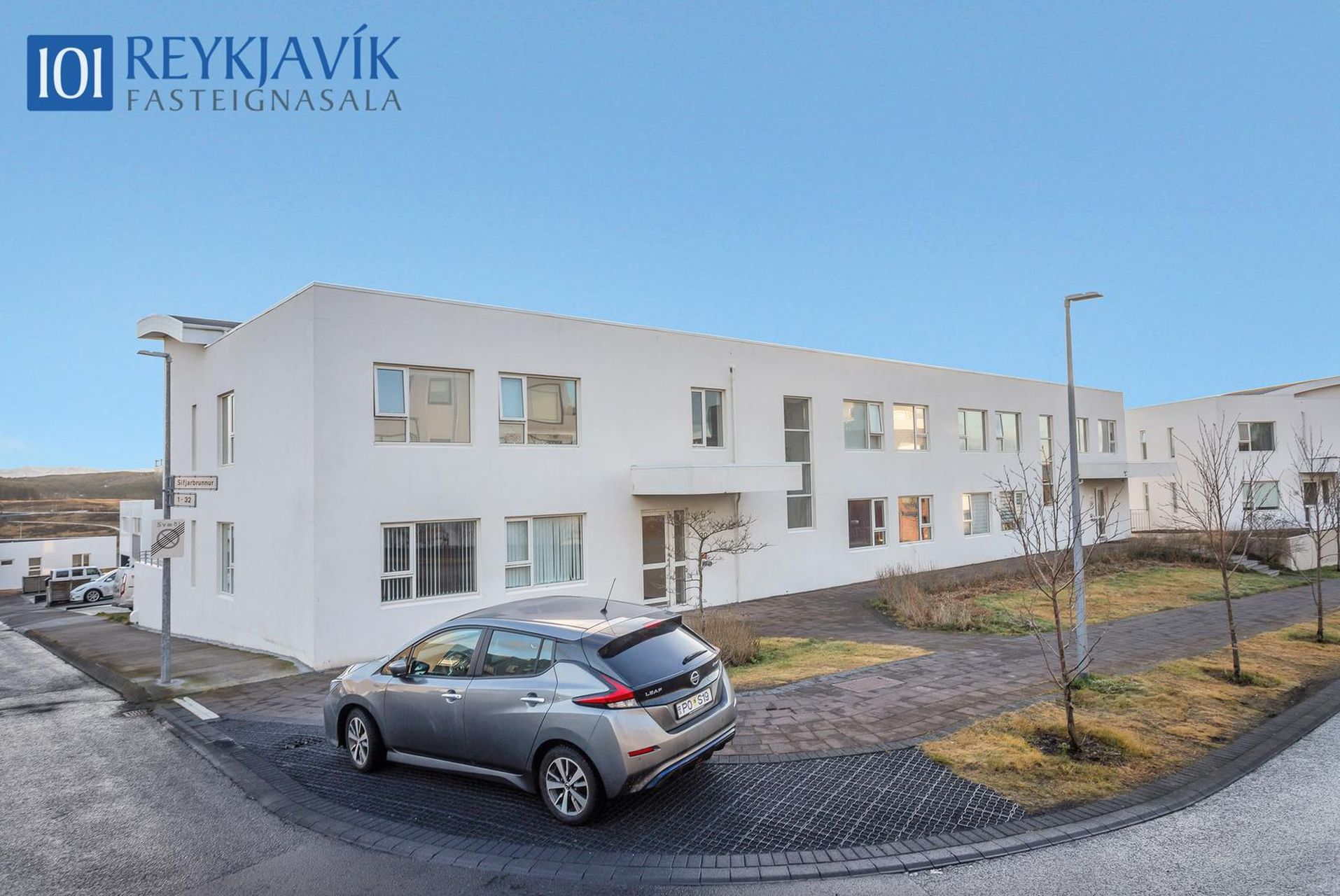 Sameigninleg bílastæði á bak við húsið en þar eru tvö stæði með rafmagnshleðslu.