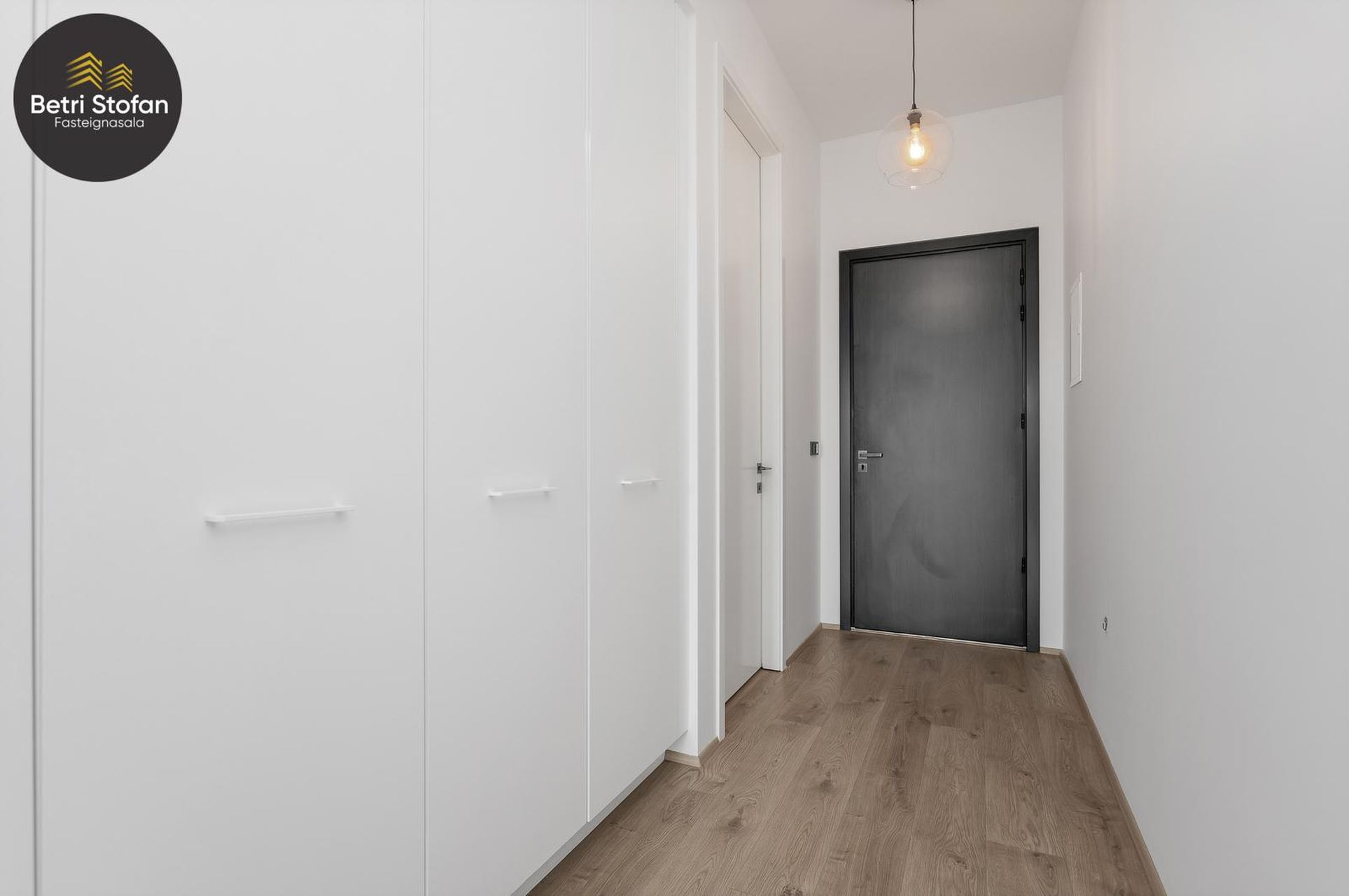 Forstofa með fataskáp.