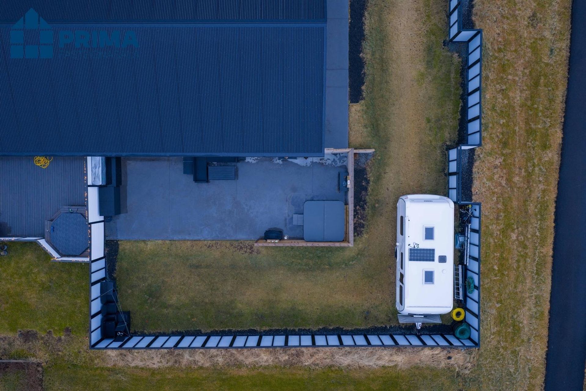 Pallurinn á bak við húsið er með heitum potti frá Heitirpottar og danfoss kerfi.