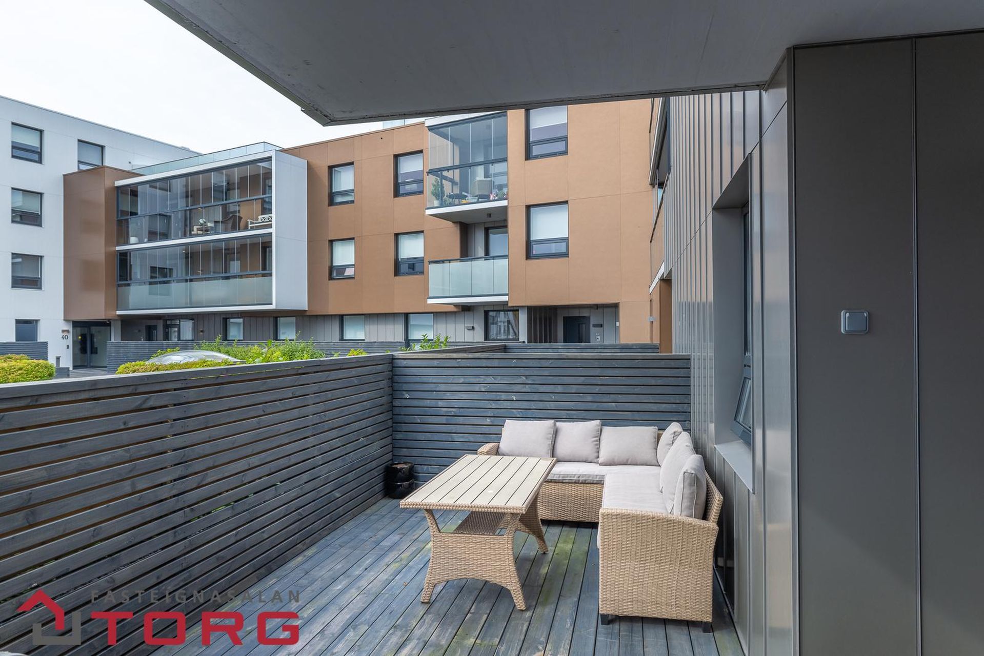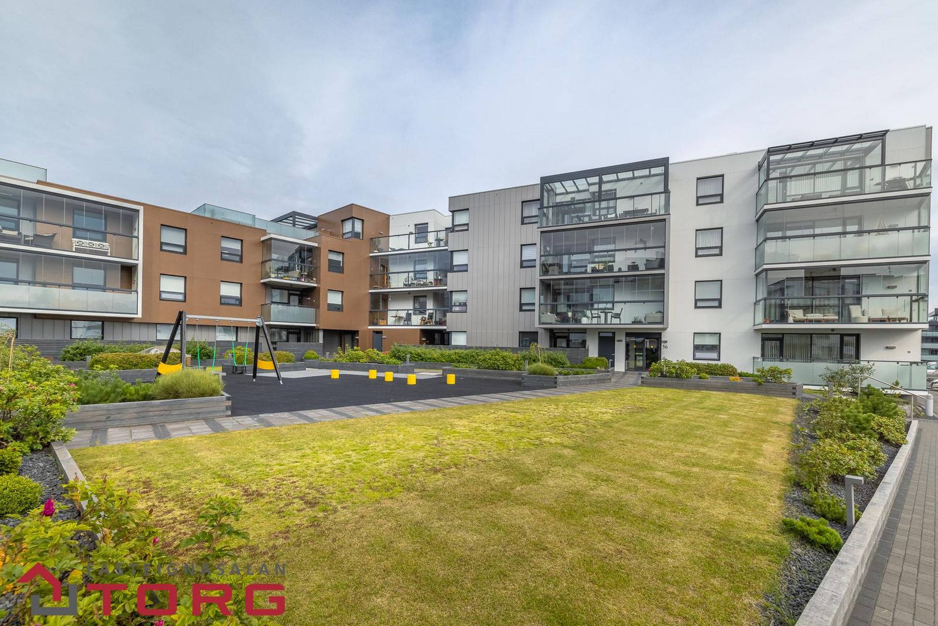 Fasteignasalan TORG og Gunnar Patrik gsm. 822-9415 eða gunnar@fstorg.is, löggiltur fasteignasalir kynna: Einstaklega glæsilega og rúmgóða 108.3 fm íbúð á 1. hæð með 3,3 fermetra austur svölum og 19,4 fm vestur verönd í glæsilegu 4ja hæða húsi við Naustavör 36 í Kópavogi. Sér geymsla 9,9 fm í kjallara fylgir eigninni og lyfta er í húsinu. Sérmerkt og rúmgott stæði í bílageymslu fylgir eigninni merkt B45. Eignin skiptist í: forstofu, hol, sjónvarpsrými, hjónaherbergi með góðum fataskápum, baðherbergi með þvottaaðstöðu, eldhús með eyju, stofu og borðstofu. Naustavör 36 er 4ja hæða fjölbýlishús í bryggjuhverfinu við Kársnes í Kópavogi. Sjávarútsýni er úr íbúðinni. Sækja söluyfirlit hér