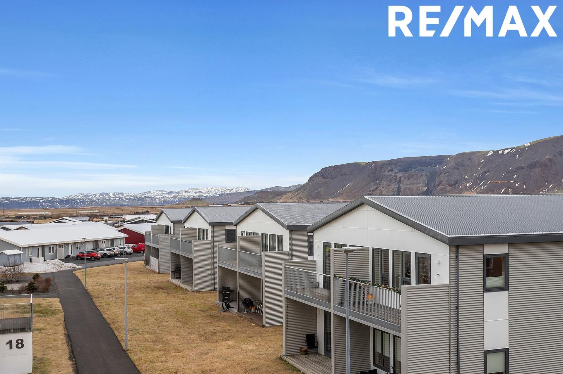 Svalir eru rúmgóðar og eru með útsýni í átt að Ingólfsfjalli (sirka 9,6 m²)