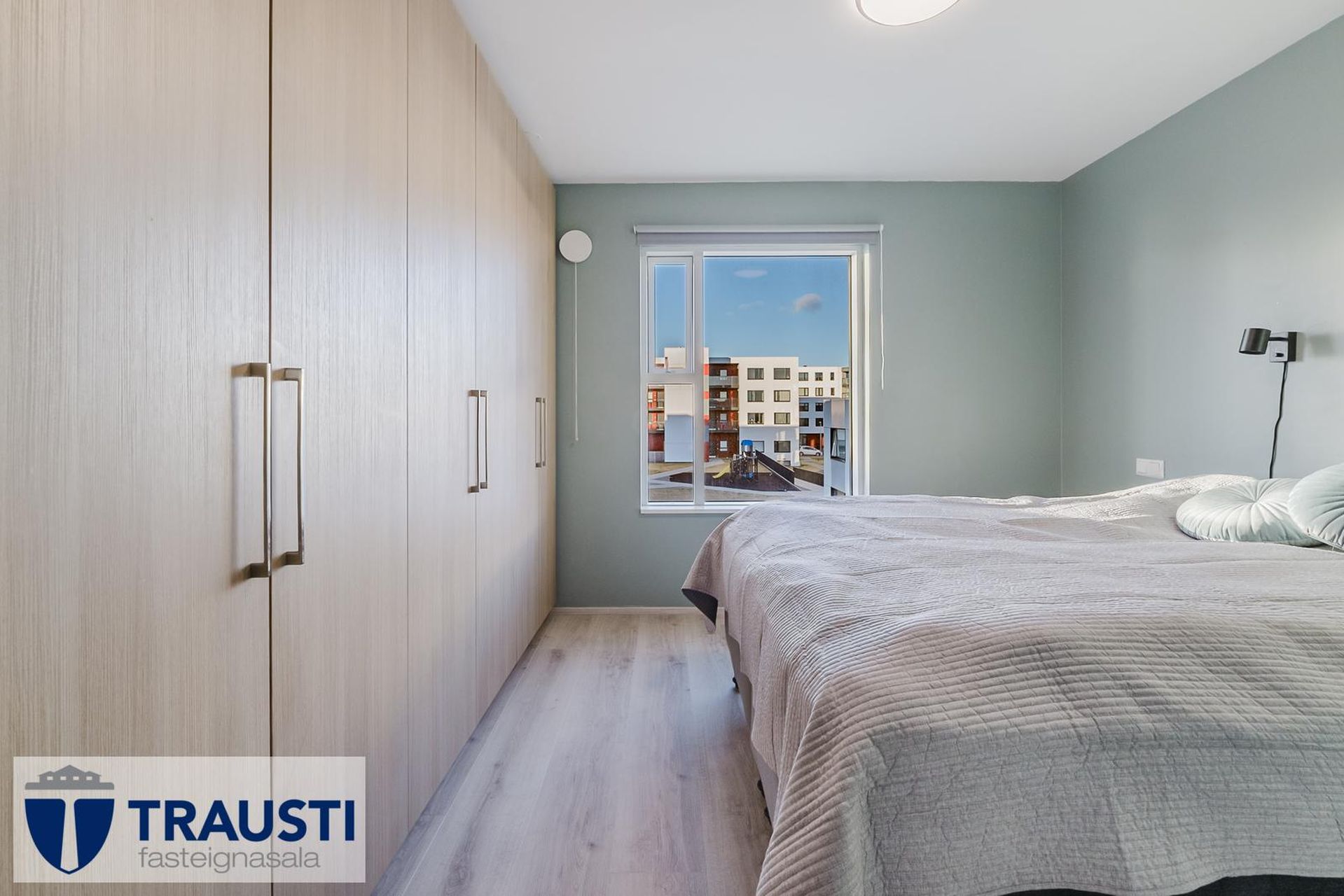 Íbúðin er einstaklega björt og vel staðsett. Vogabyggð er nýtt hverfi í Reykjavík, við Elliðarárvog. Stutt er í leik-, grunn- og mennstaskóla, hundasvæði (hundó) og í alla helstu verslun og þjónustu. Strætó stopp hverfisins er "Vogar".