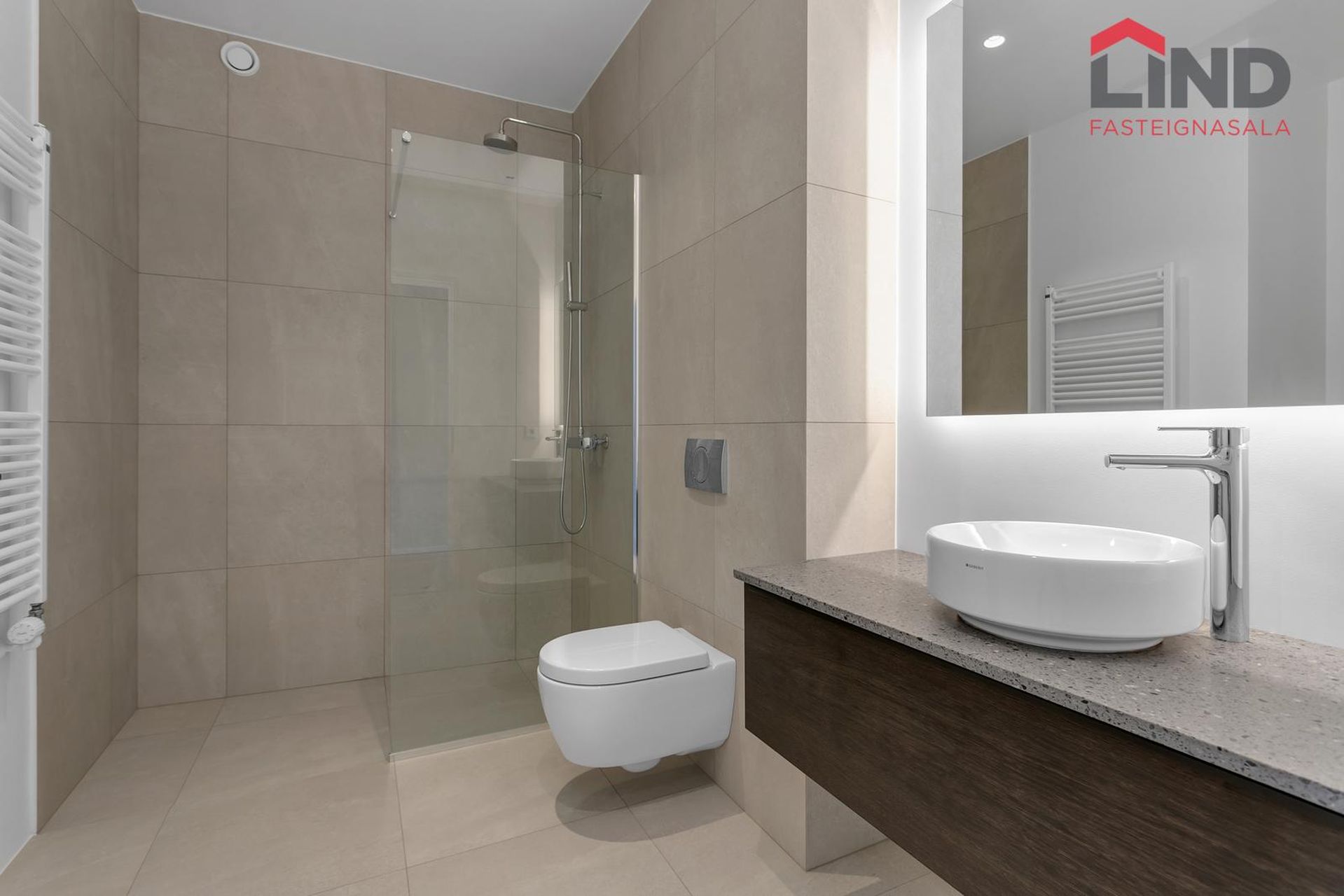 ÍBÚÐIN: Aukin lofthæð, 280 cm og gólfsíðir gluggar. Vandaðar Innréttingar frá danska fyrirtækinu JKE design. Quartz borðplötur í eldhúsi og á baðherbergi frá Granítsmiðjunni. Lýsing er hönnuð af Lumex. bakaraofn og helluborð eru frá Miele.Ísskápur með frysti og uppþvottavél frá AEG. Blöndunar- og hreinlætistæki frá Tengi.