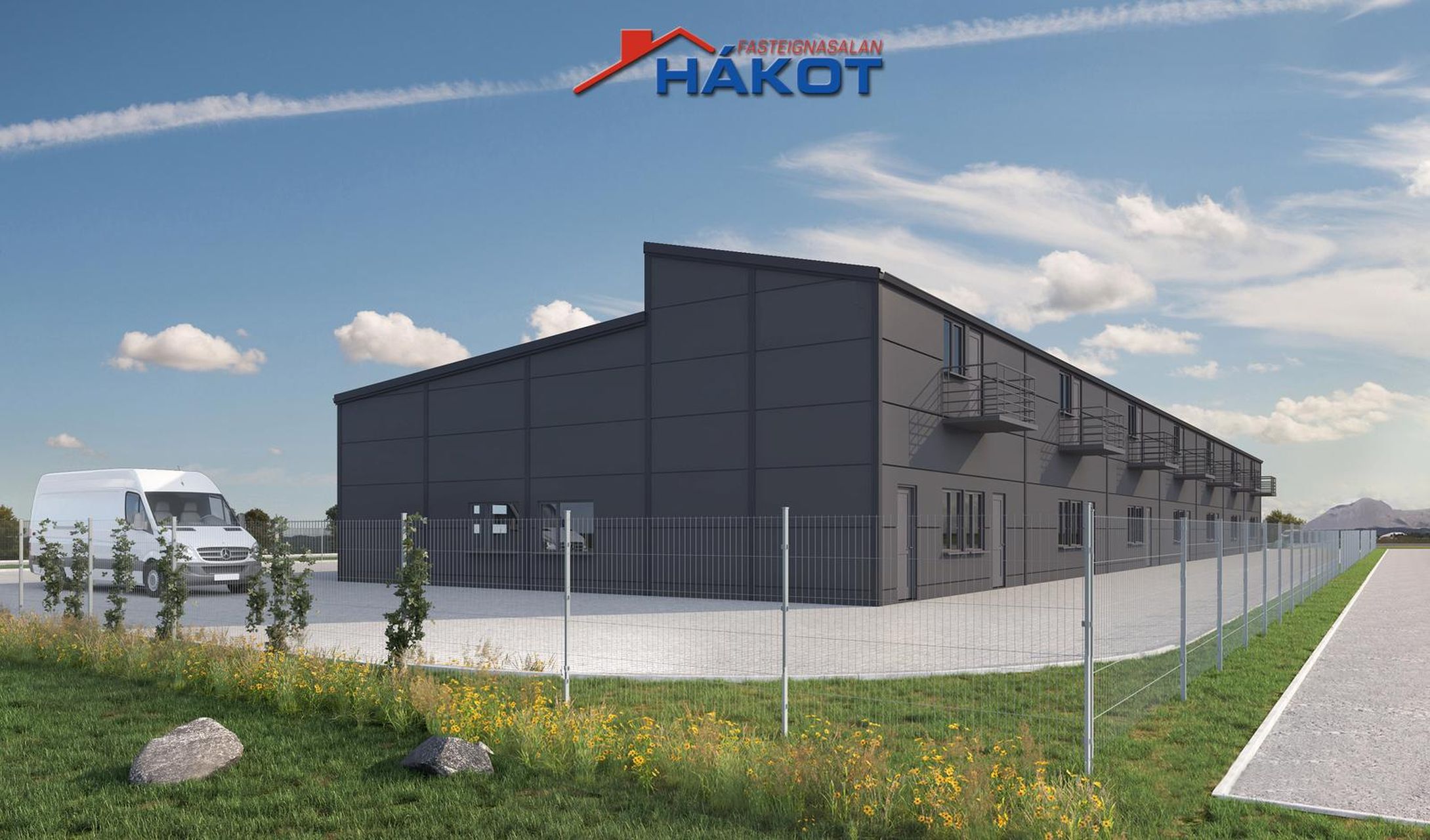 Öll lóðin verður malbikuð og hún afgirt með 180cm hárri galvan- og pólýhúðaðri girðingu. Eitt tíu metra