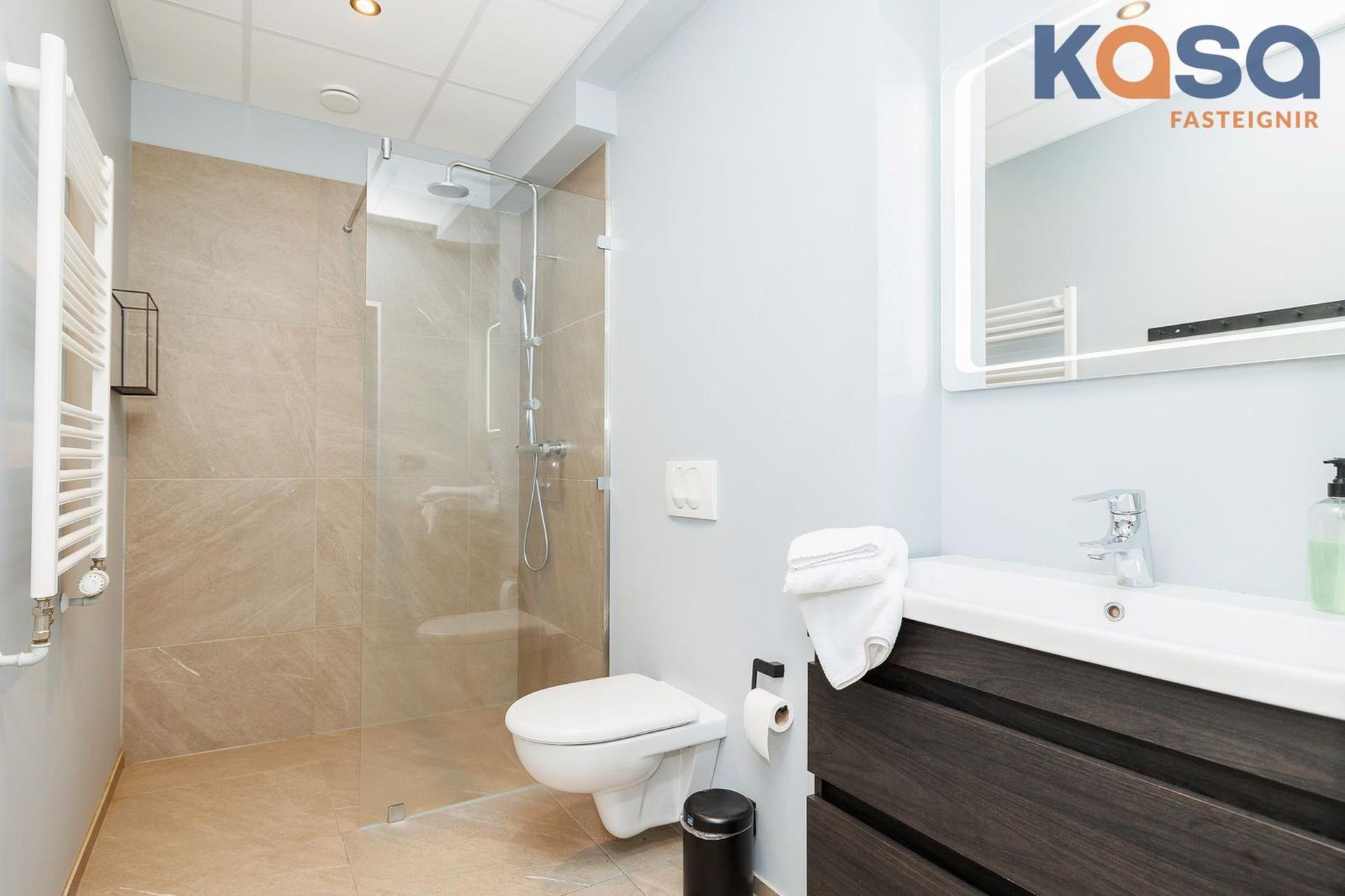 Tryggvabraut 24 íbúð 207. Nýleg 51,7 fm 2 herbergja orlofsíbúð í austur enda í lyftuhúsi laus til afhendingar við kaupsamning. Við húsið er sameiginleg verönd, heitir pottar og grill aðstaða. Í sameign er sér upphituð skíðageymsla. Tilvalin orlofsíbúð fyrir fyrirtæki, starfsmannafélög eða einstaklinga. Íbúðin er í skammtímaleigu og fylgja allar bókanir með við sölu. Húsið var endurnýjað á árunum 2020/2021 og voru gerðar 20 orlofsíbúðir í því. Íbúðin er með starfsleyfi.