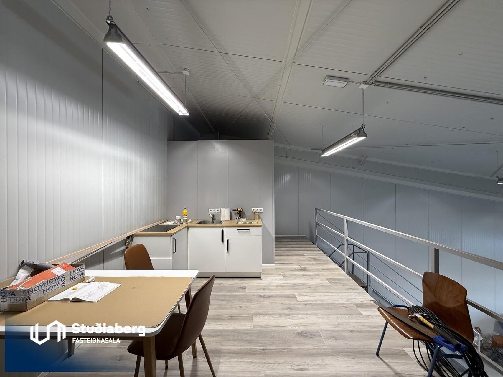 Stuðlaberg fasteignasala kynnir bil merkt 0121, um er að ræða 112fm bil auk óskráðu 45fm millilofti með baðherbergi, eldhúsi og rúmgóðu herbergi. 4x4m innkeyrslu hurð ásamt því fylgir um 57.6fm sér afnotarflötur afmarkaður á lóðinni þar sem möguleiki er að geyma gáma kerrur og fleirra inná læstri lóð. . Lóðin er fullfrágengin og er girðing með rafmagnshliði í kringum húsið, lóðin er öll malbikuð og verða afmarkaðir sér afnotafletir á lóðinni sem fylgir hverju bili. Handstýrt innkeyrsluhlið og er talnakóði við inngöngu hliðið.