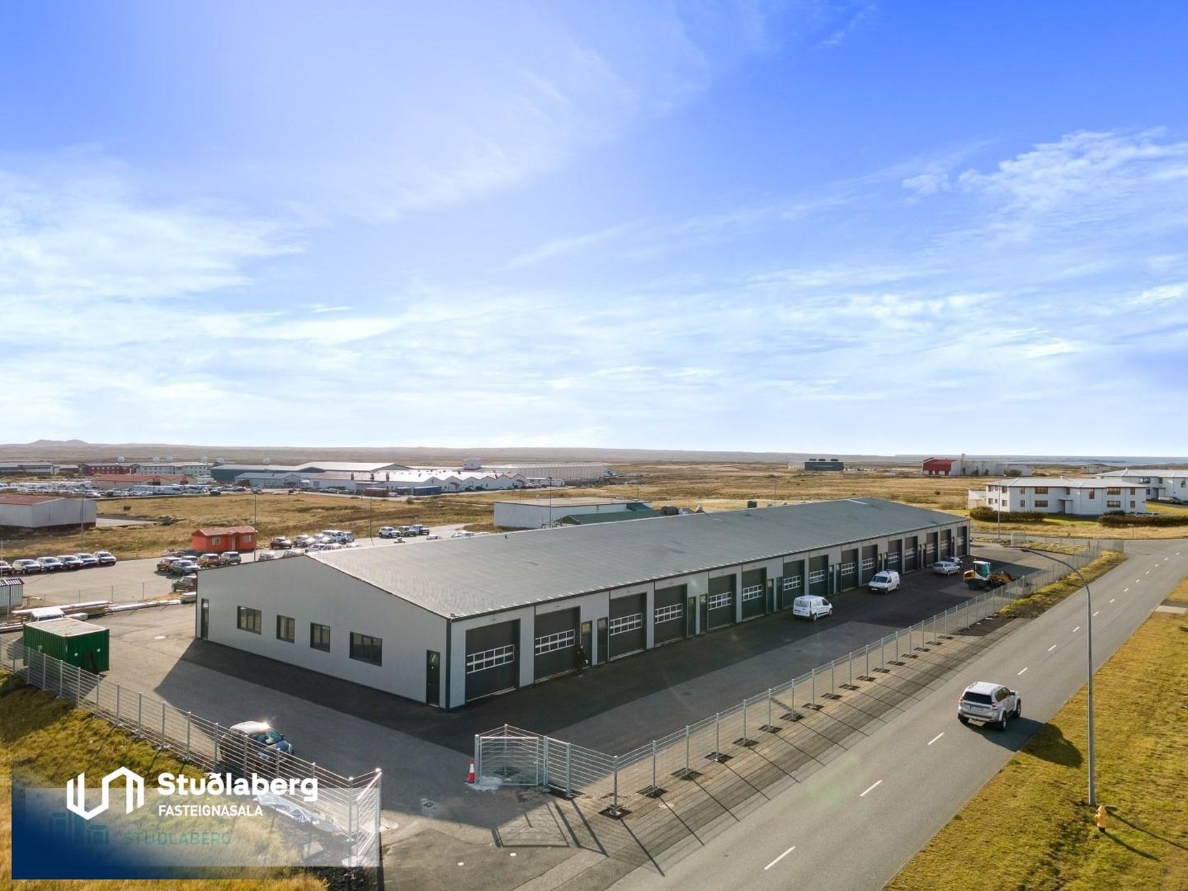 Húsið er klætt að utan með 100mm samlokueiningum sem eru einangraðar með steinull. Hvert bil er með iðnaðarhurð og inngönguhurð.