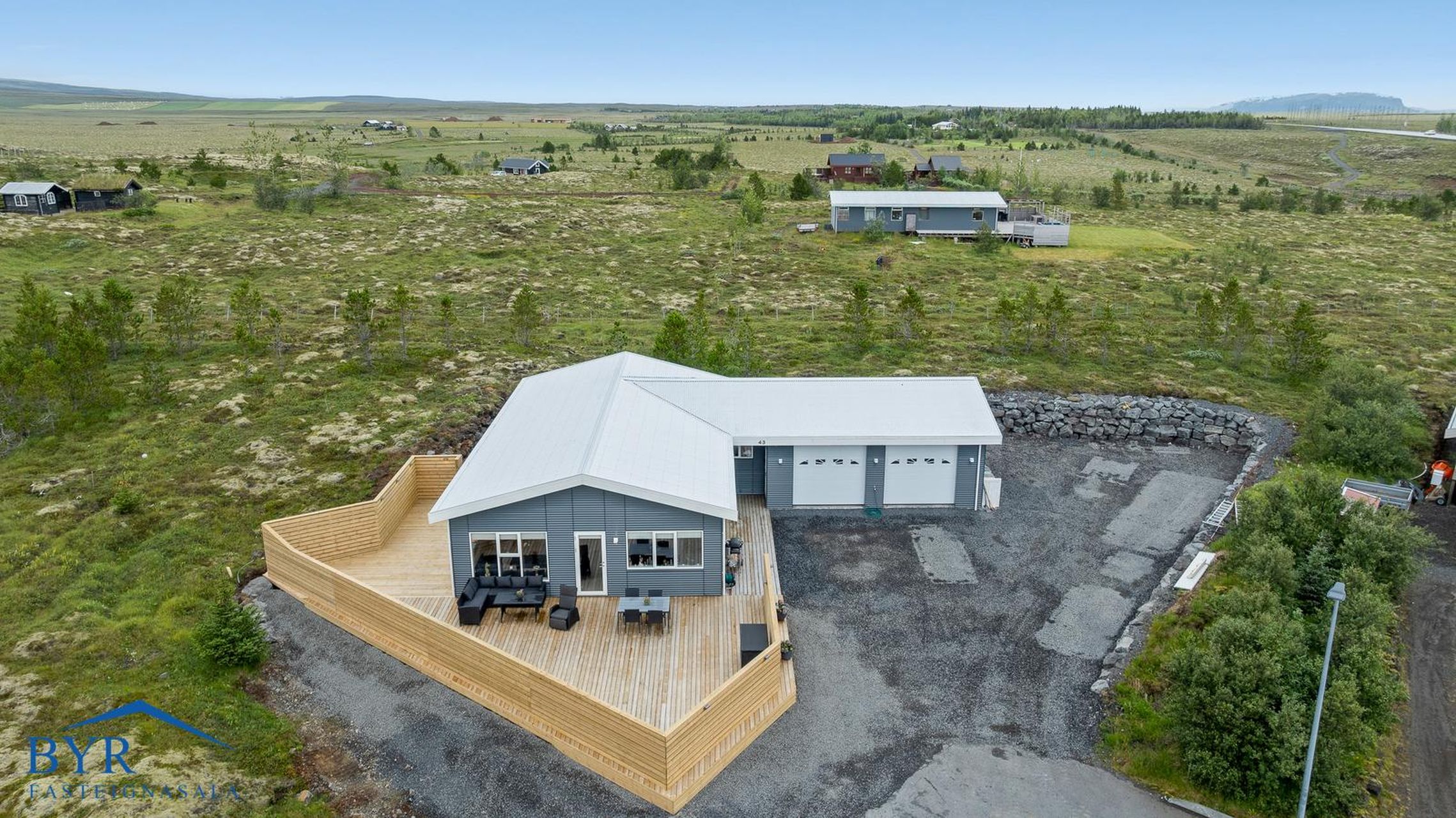 BYR fasteignasala kynnir í einkasölu HRAUNBRAUT 43, Borg Grímsnesi, 805 Selfoss. Fjögurra herbergja einbýlishús á einni hæð með innbyggðum tvöföldum bílskúr.