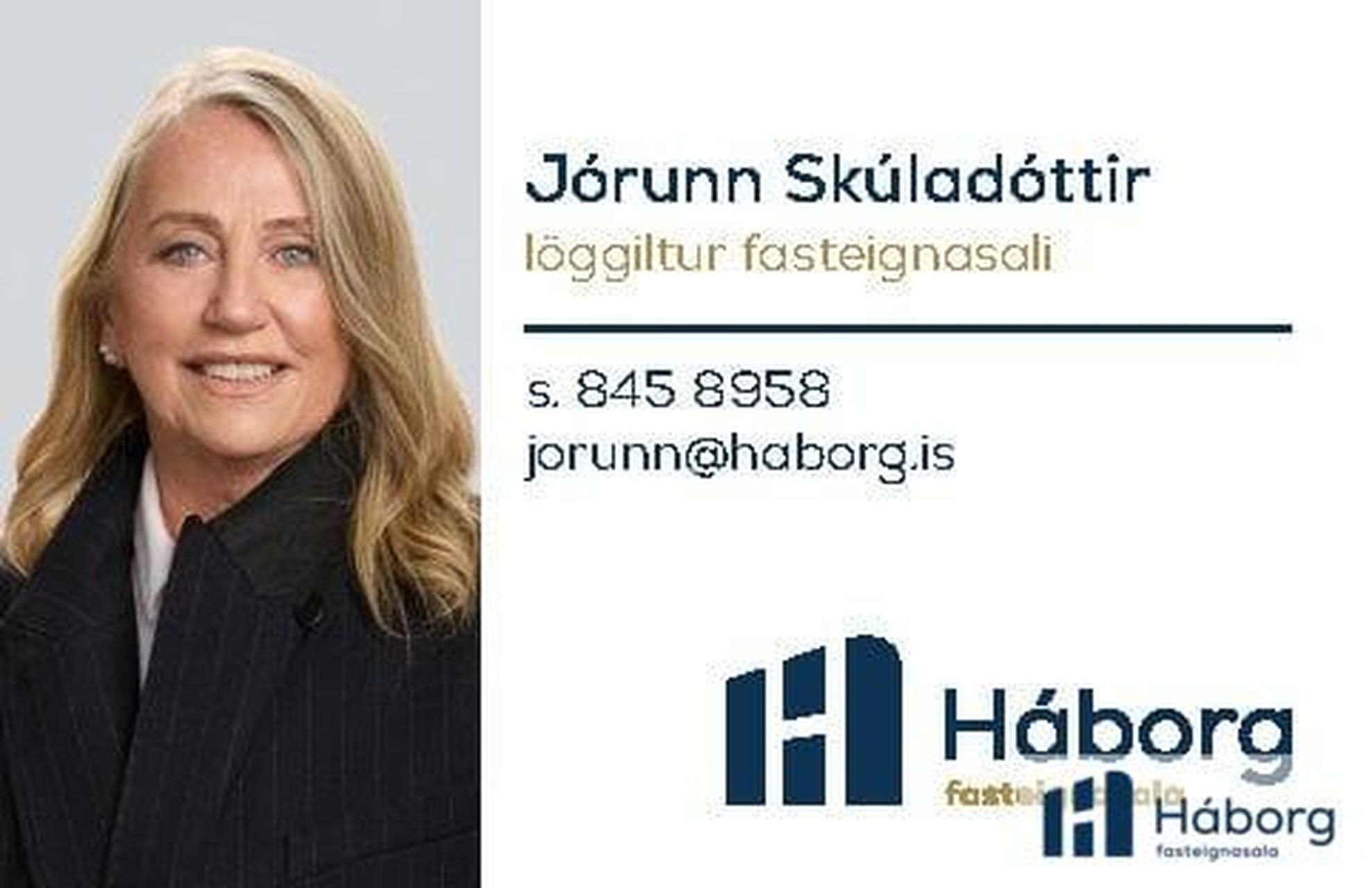 Allar nánari upplýsingar um eignina veitir Jórunn lögg.fasteignasali í síma 845-8958 eða jorunn@haborg.is