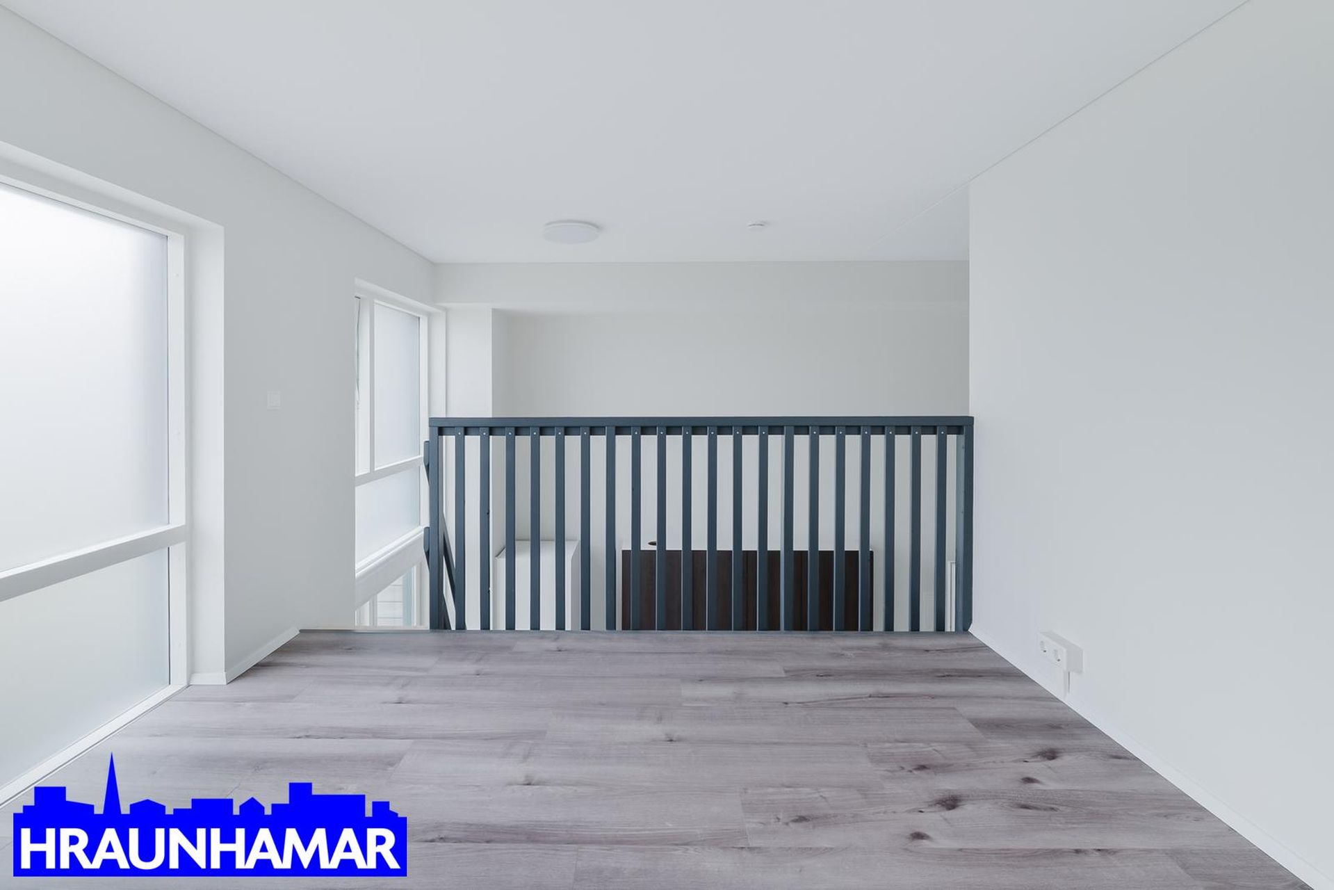 Stærð bils er 35,1 fm auk 9 fm óskráð millilofts, auk 4,6 fm geymslu samtals skráðir 39,7 fm. Alrými er með gólfsíðum gluggum. Eldhús er með bakarofn og span helluborð ásamt innbyggðum ísskáp og uppþvottavél.
