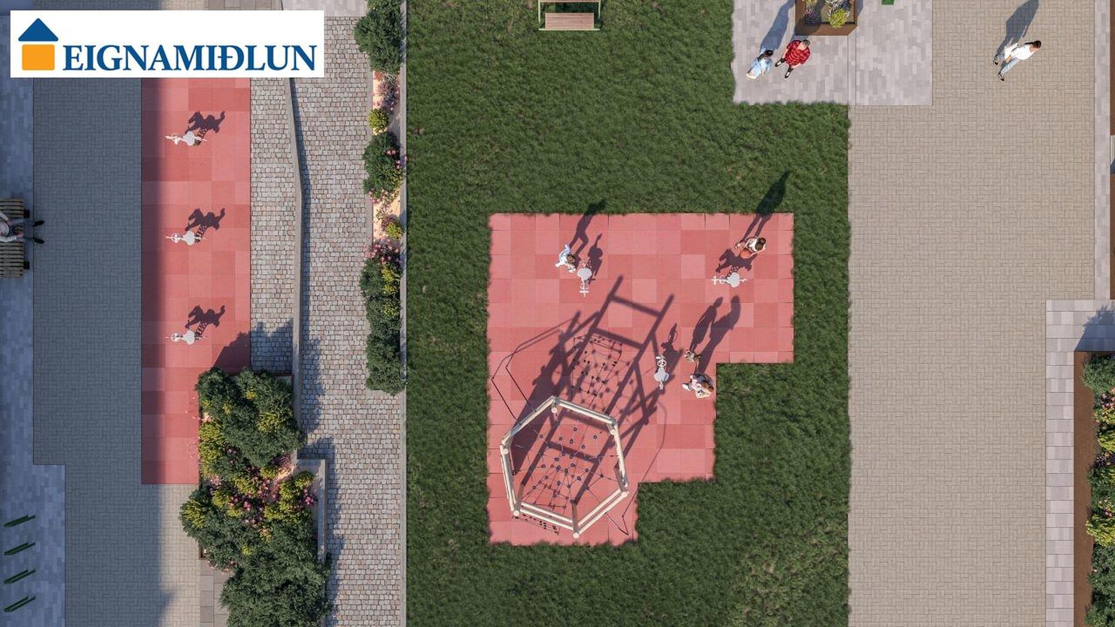 GARÐUR: Sólríkur og skjólgóður inngarður með leiktækjum, gróðri og aðstöðu fyrir iðandi mannlíf. Glæsilegar íbúðir við Digranes með einstaklega góða staðsetningu fyrir barnafólk.