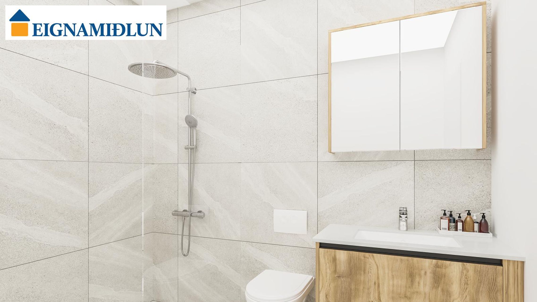 Athugið innimyndir eru úr annarri íbúð í verkefninu og eru einvörðungu til glöggvunar um útlit innréttinga og baðherbergi /þvottahús.