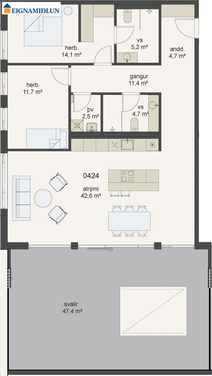 SJÁ NÁNAR UM EIGNINA Í SKILALÝSINGU FYRIR ÍBÚÐ 424. SMELLTU HÉR FYRIR SÖLUYFIRLIT