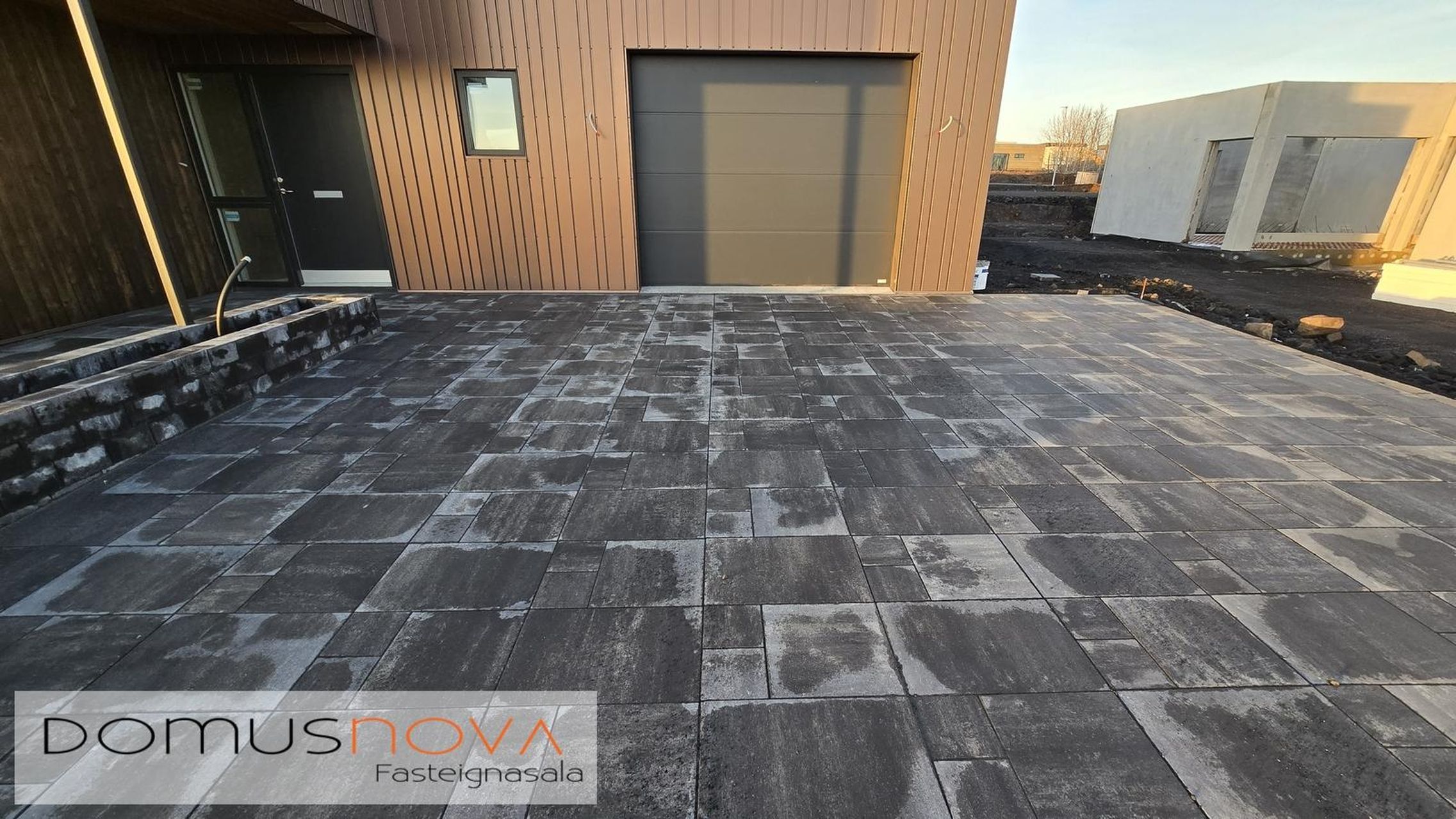 Bílastæði: Fyrir framan húsið eru þrjú bílastæði, hellulögð með snjóbræðslu.