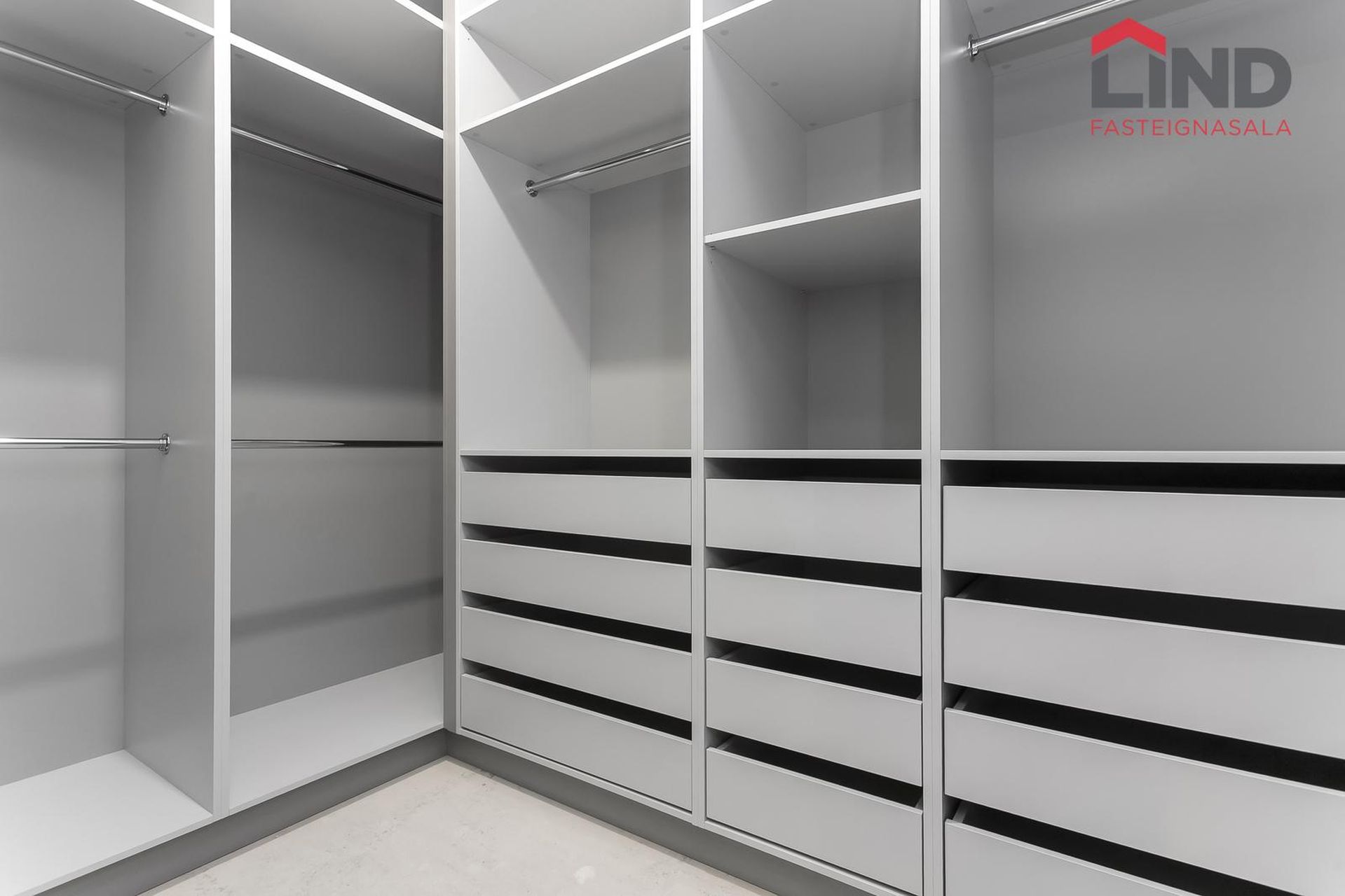 Forstofa: Rúmgóð forstofa með góðu skápaplássi. Þakgluggi sem veitir birtu inní rýmið. Skápar eru sérsmíðaðir frá Selós. Úr anddyri er gengið inní geymslu.