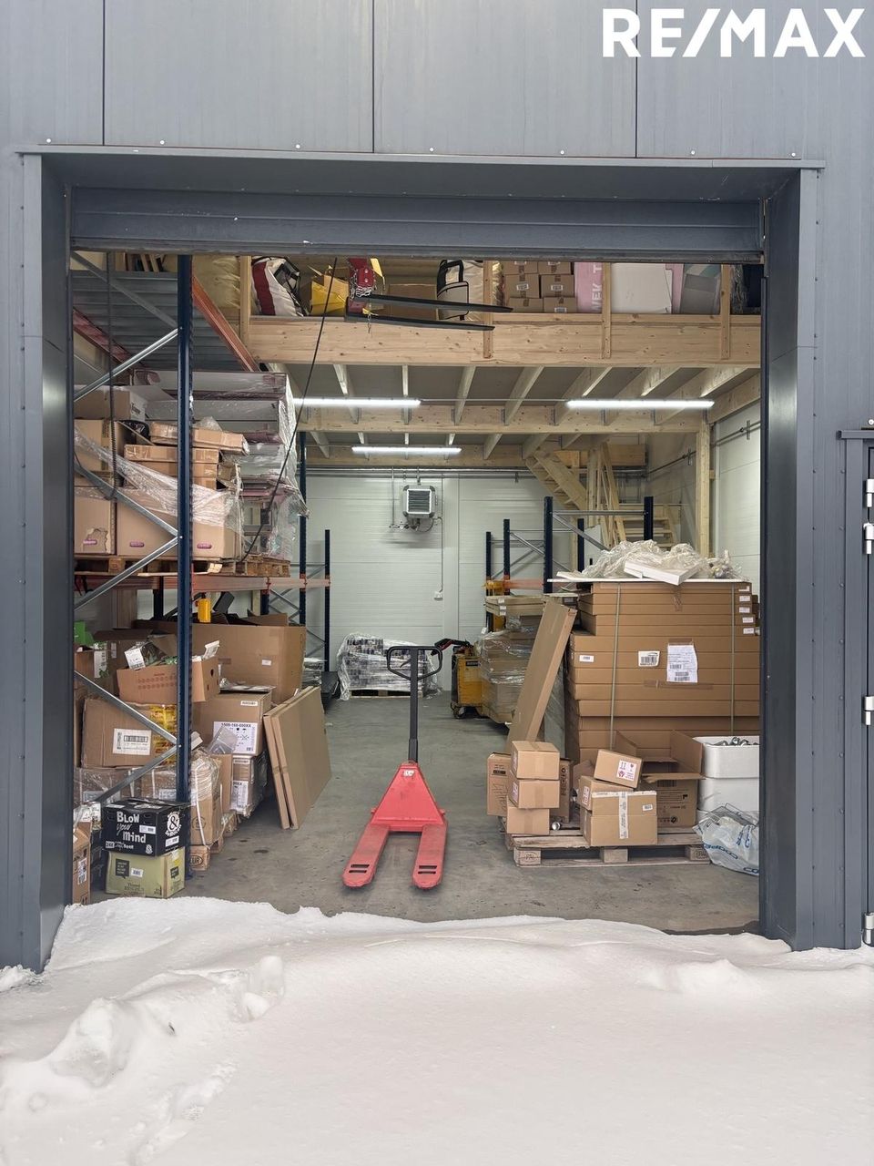 Efri hæð er með harðparketi á gólfum. Einnig er rafmagns talía í húsnæðinu sem er hægt að nota til að lyfta þungum hlutum upp á efri hæðina.