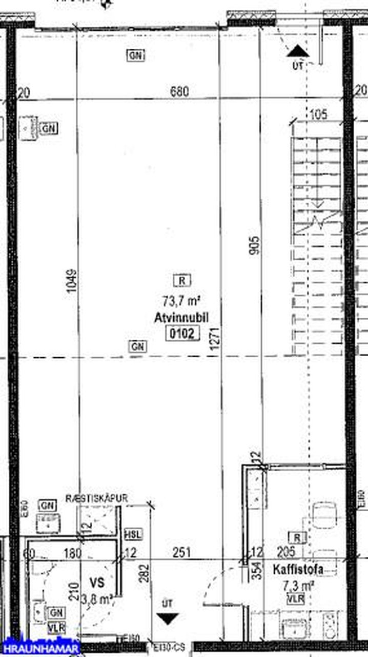 Í húsinu eru átta eignarhlutar og eru þeir misstórir. Stærðirnar eru frá 120,1 fm til 541 fm, í forsteyptu fullkláruðu atvinnuhúsnæði með millilofti og steyptum stiga. Einstaklega góð staðsetning fyrir fjölbreytta starfsemi og iðnað.