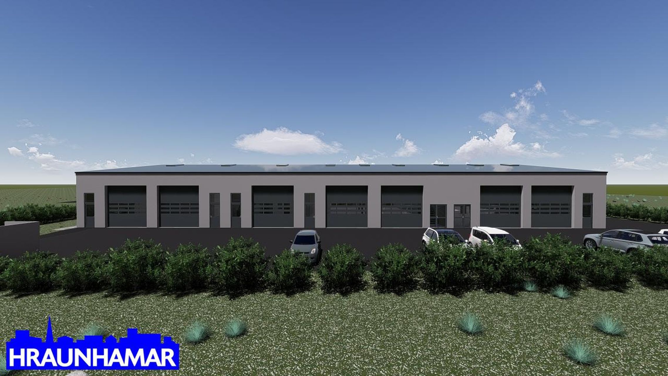 Sökklar, útveggir og burðarveggir eru úr forsteyptum einingum og þak er með sperrum og yleiningum frá Límtré Vírnet. Innkeyrsluhurðir eru Ál-panel hurðar. Söluaðili er BM-Vallá