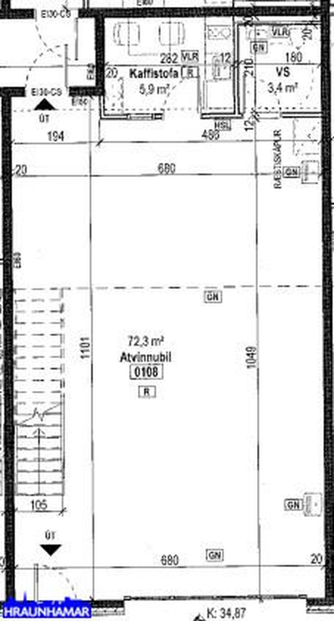 Í húsinu eru átta eignarhlutar og eru þeir misstórir. Stærðirnar eru frá 120,1 fm til 541 fm, í forsteyptu fullkláruðu atvinnuhúsnæði með millilofti og steyptum stiga. Einstaklega góð staðsetning fyrir fjölbreytta starfsemi og iðnað.
