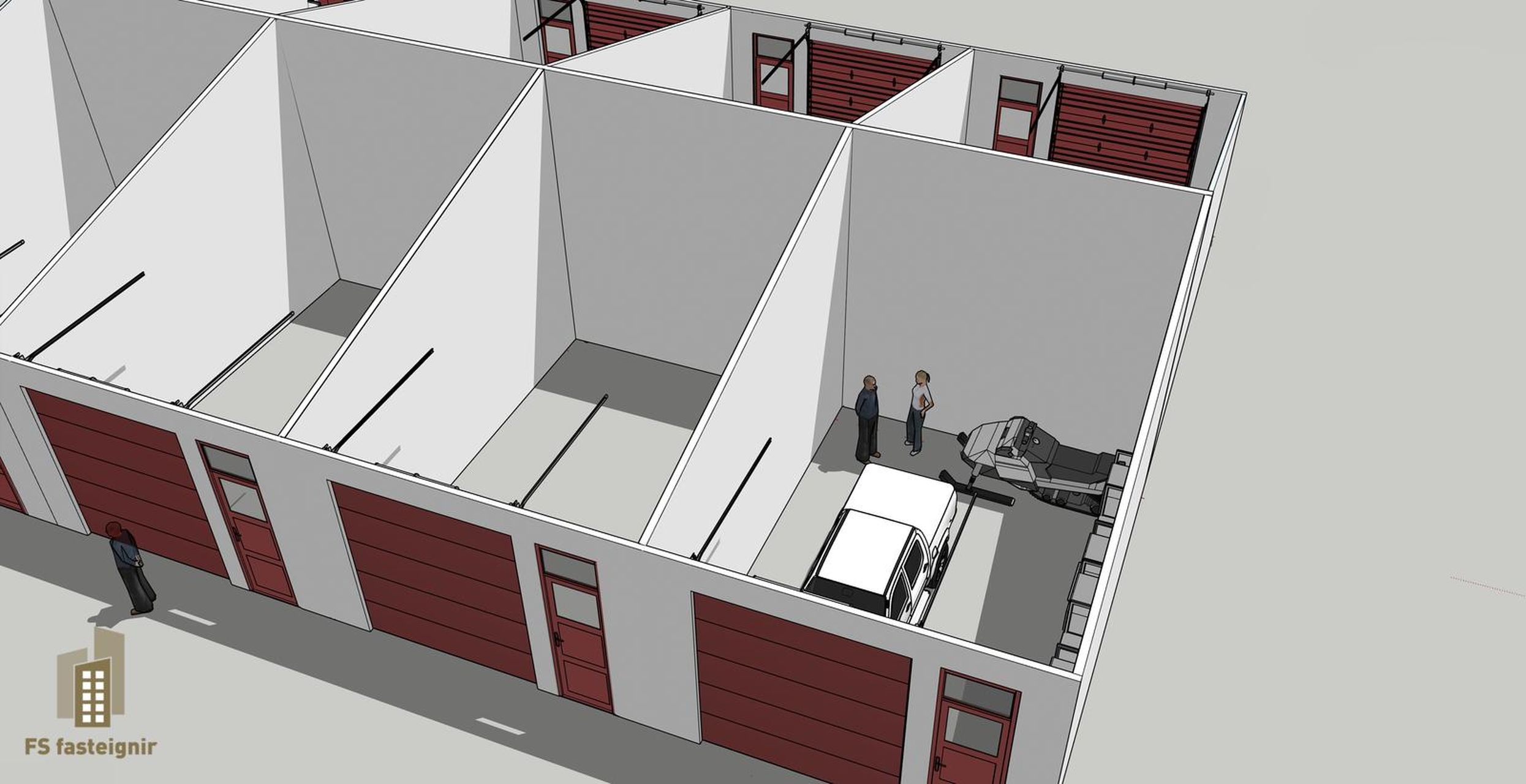 Hæð innkeyrsluhurðar er 3 metrar og breidd er 3 metrar og verður hún rafdrifinn og einnig verður ein inngangshurð.