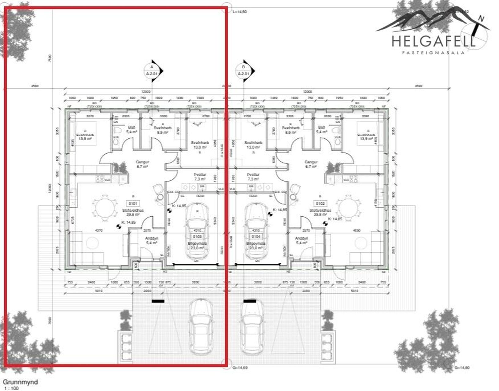 Innveggir: Innveggir eru 120 mm hefðbundnir gifsveggir og burðarveggir eru steyptir.