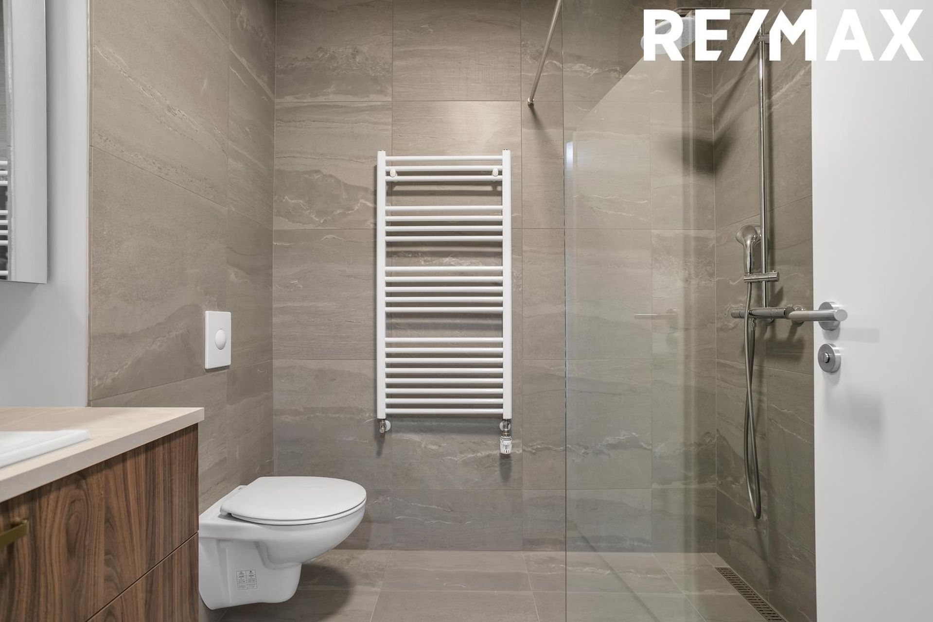 Baðherbergi: Baðinnrétting kemur frá Axis. Hreinlætistæki og handklæðaofn eru frá Byko. Salernið er upphengt og innbyggt. Hitastýrð blöndunartæki verða við sturtu. Gólf eru flísalögð og veggir að hluta upp í loft