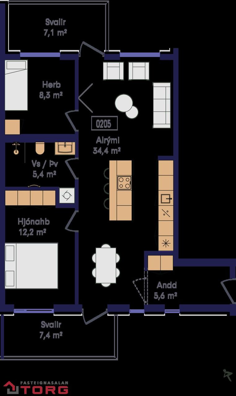 Fasteignasalan TORG Kynnir: Góð 3ja herbergja íbúð með tvennar svalir. Íbúð merkt:205, sem skilast fullbúin með gólfefnum. Íbúðin er alls 83,7fm að stærð á 2. hæð í góðu lyftuhúsi. Íbúðin sjálf er skráð 77,3fm og skiptist í anddyri, alrými með eldhúsi, borðstofu með útgengi út á svalir inn í sameiginlegan garð, til suðurs og stofu með svalir til norðurs . Tvö svefnherbergi, baðherbergi með þvottaaðstöðu og sér geymslu í sameign merkt: 0013, skráð 6,4fm. Íbúðin er án bílastæðis. Allar nánari upplýsingar, teikningar og skilalýsingu er hægt að nálgast með að hafa samband við Margrét Rós Einarsdóttir, fasteignasali í GSM: 856-5858 eða margret@fstorg.is
