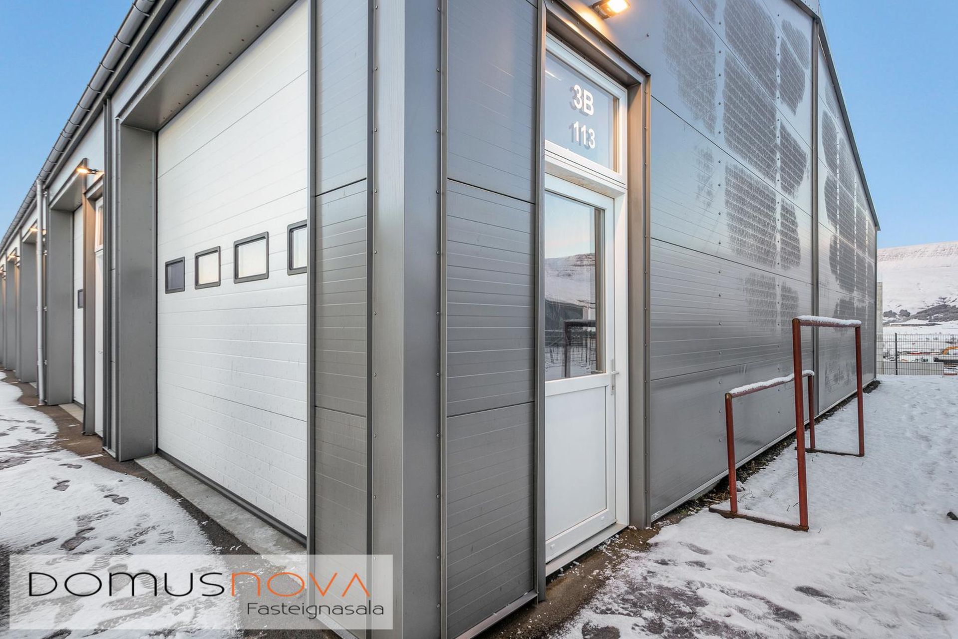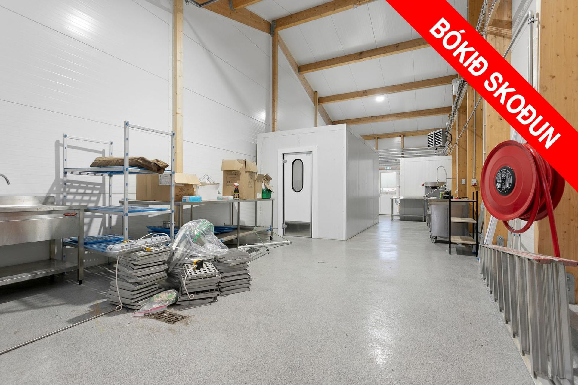 Nýlegt 82,2fm atvinnuhúsnæði með einni innkeyrsluhurð og tveimur inngönguhurðum. Önnur er á hliðinni og hin að baka til. Húsið er endabil fjær götu merkt 02 0113. Nýlegur kælir er í eigninni og þvottalína fyrir iðnaðareldhús sem getur fylgt með. Innst í rýminu er rúmgóð snyrting með salerni og skolvaski.