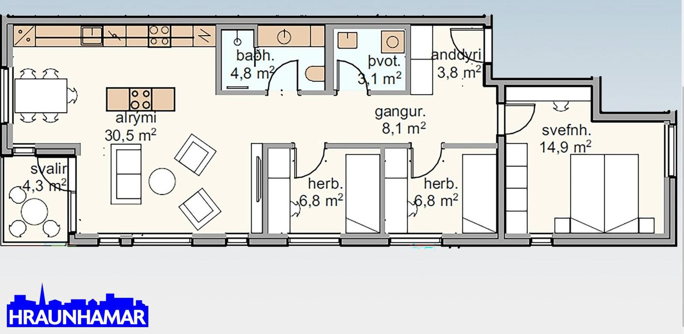 Stærðir: 69,4 - 133,2 fm