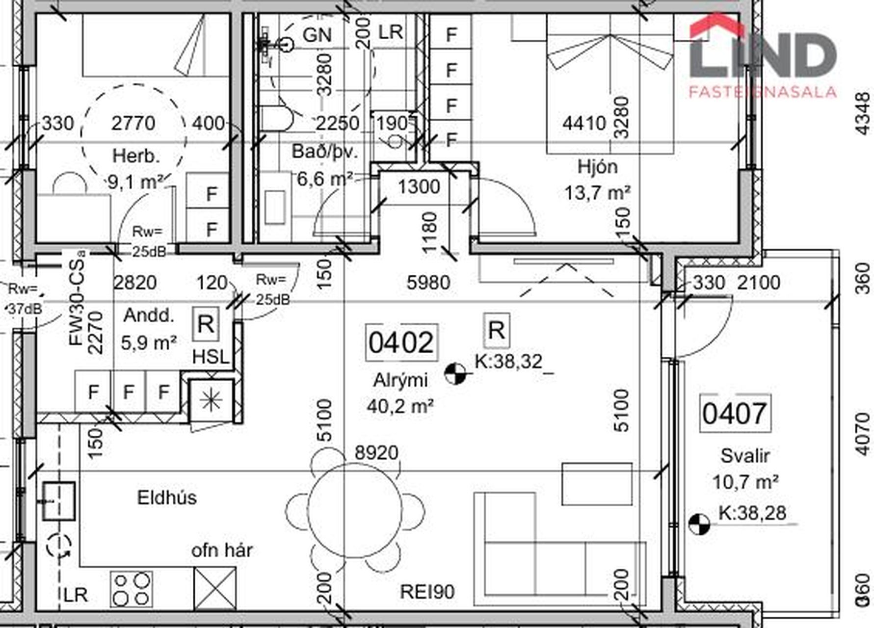 Íbúð 402: 95,6 fm, þriggja herbergja íbúð á 4. hæð.