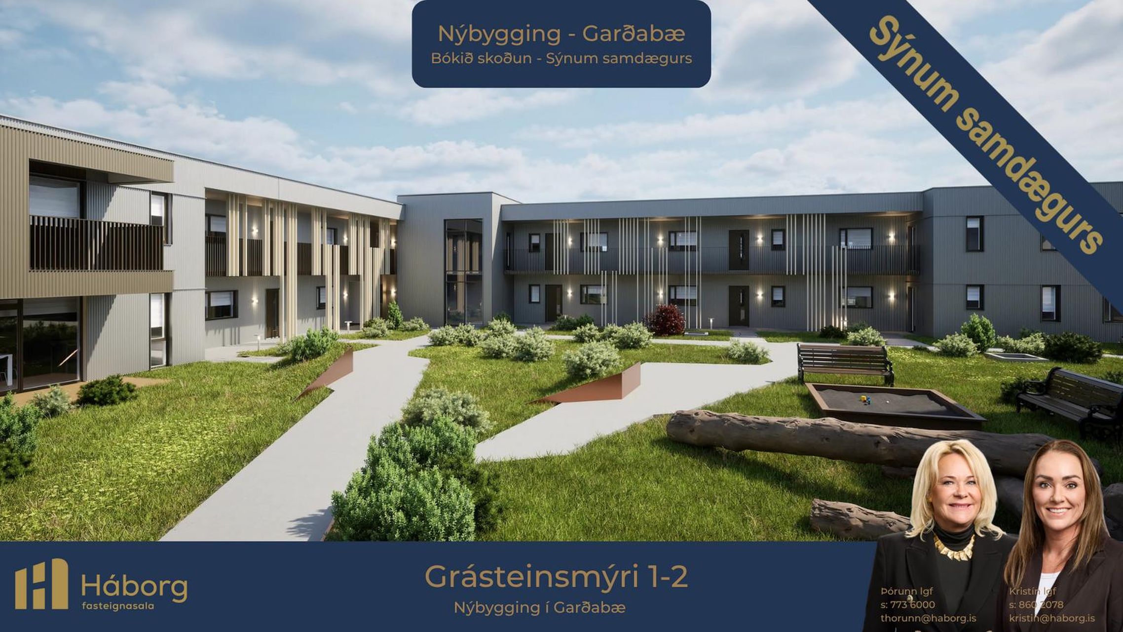 Háborg fasteignasala kynnir Grásteinsmýri 1, Garðabæ. Nýbyggingin er staðsteypt, einangruð að utan og klædd með ál- og bambus klæðningu. Góðar 2ja, 3ja 4ra og 5 herbergja íbúðir í litlu fjölbýli með lyftu. Útsýni er úr flestum íbúðum og timbur-verönd fylgir íbúðum á 1. hæð. Íbúðirnar afhendast án megin gólfefna en baðherbergi eru flísalögð að hluta. Næg bílastæði á lóð. Áætluð afhending íbúða er í apríl-maí 2026.