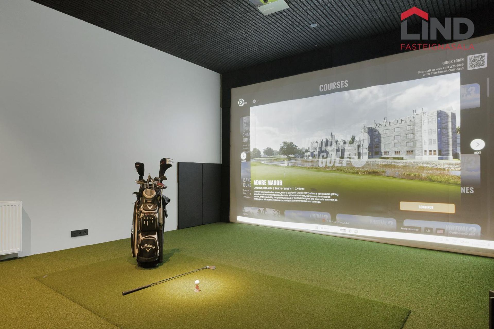 Glæsileg sameign (miðrými) eru í húsunum með útsýni að Heiðmörk. Miðrýmið skilast fullbúið með tveimur golfhermum, billiard aðstöðu, æfingasal og hlýlegri setustofu sem er hentug fyrir afslöppun, fundi eða óformlega samveru. Einnig verður eldhúsinnrétting, borð og stólar fyrir veislur, spilakvöld eða öðru líkt þar sem notalegt andrúmsloft ræður ríkjum. Auk þess er þvottaaðstaða fyrir bifreiðar í bílakjallara fyrir íbúa.