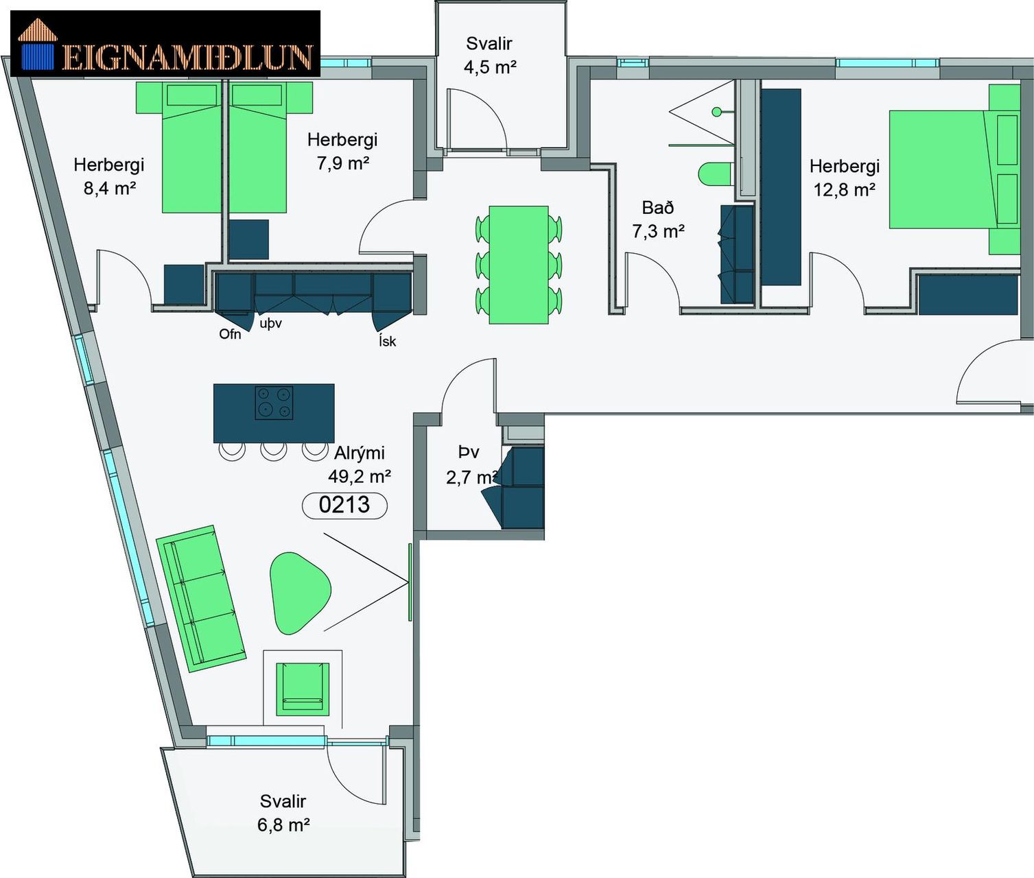 Íbúð merkt 02-13 er vönduð 4 herbergja íbúð. Fastanúmer eignar: 253-4875. Birt flatarmál er 124.4 fm með svölum og sérgeymslu í sameign. Fjöldi stæða í bílageymslu og fylgja tvö stæði með þessari íbúð. Ásamt því er fylgir frístundaskúr með íbúðinni. Tölvumyndir eru af sýningaríbúðum.