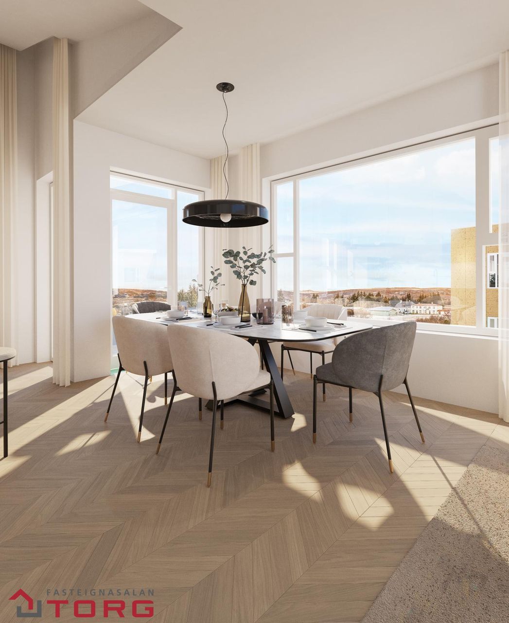 Fasteignasalan TORG kynnir: Loft-gæði / Hljóð-gæði / Birtu-gæði! Svansvottunarferli! Um er að ræða góð 3ja herbergja íbúð á efstu hæð með svalir inn í sameiginlegan garð, ásamt frístundarskúr og tveimur bílastæðum í bílakjallara. Íbúð merkt:0407, sem skilast fullbúin án gólfefna. Íbúðin er alls 98,1fm að stærð á 4. hæð í góðu lyftuhúsi. Íbúðin sjálf er skráð 83,4fm og skiptist í anddyri, alrými með eldhúsi og stofu með útgengi út á svalir, 2 svefnherbergi, baðherbergi með þvottaaðstöðu og frístundarskúr í sameign merkt: -105, skráð 14,7fm. ásamt tveimur bílstæðum í bílakjallara merkt: N27 og N29. Allar nánari upplýsingar, teikningar, og skilalýsingu er hægt að nálgast með að hafa samband við Guðný Ösp Ragnarsdóttur, fasteignasala í GSM: 665-8909 eða gudny@fstorg.is