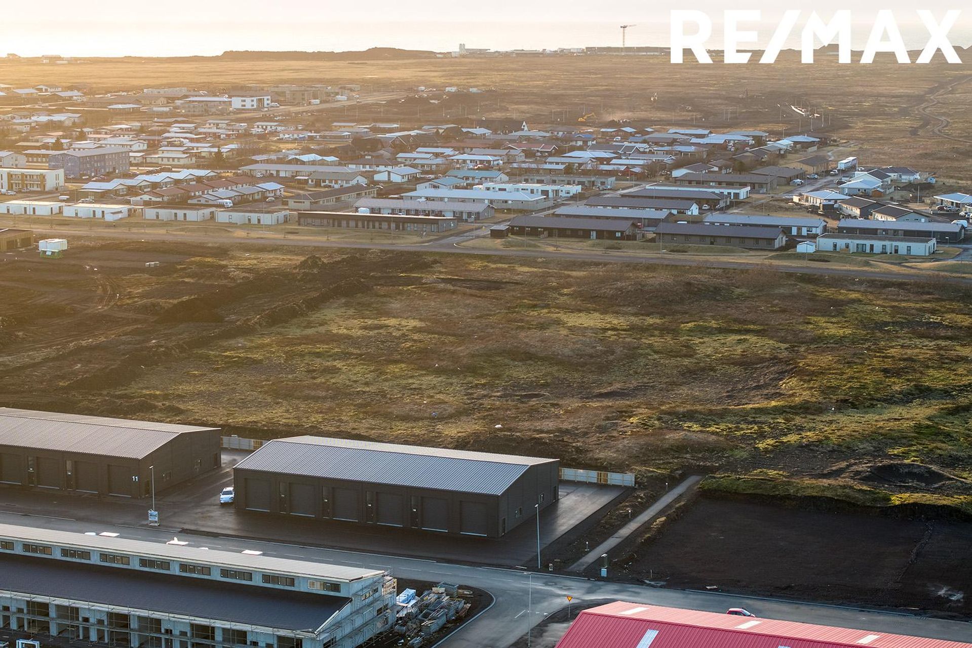 Gólfplata: Hefðbundin staðsteypt plata, einangruð að innan með gólfhita. Neysluvatnslagnir eru lagðar samkv. verkfræðiteikningum, rör í rör. Útveggir/ þak / þakkantur / burðarvirki: Allir útveggir og þak hússins eru úr yleiningum, samlokueiningar frá Kingspan. Burðarvirki er límtré. Litur klæðninga að utanverðu er RAL7016 og að innan RAL 9010. Þakkantur er einfaldur, stálklæddur í sama lit og þakefni með utanáliggjandi álrennum og niðurfallsrörum í sama lit. Mænishæð er yfir 7 metrar. Gluggar og hurðir: Iðnaðarhurðir eru frá Héðni og er hæðin 4,35, litur RAL 7016 og rafmótoropnun. Gönguhurðir og gluggar eru úr viðhaldsfríu PVC plasti með tvöföldu einangrunargleri. Litur RAL 7016. Frárennslis og neysluvatnslagnir: Skólp‐ og regnvatnslagnir eru fullfrágengnar og tengdar fráveitukerfi í götu. Gólfniðurfall er fyrir innan allar innkeyrsluhurðir. Deilikistur fyrir neysluvatn frágengnar í hverri starfseiningu. Niðurföll af malbikuðum plönum frágengin og tengd fráveitukerfi. Hitakerfi: Gólfhitakerfi sem er innsteypt í botnplötuna á járnagrind komið í hverja starfseiningu, deilikista með hringrásarkerfi tengd í hverri einingu. Kerfi stjórnað með handvirkum ofnloka. Slökkvitæki fylgir. Sér frádráttamælir fylgir hverju bili og er staðsett í inntaksrými. Rafmagn: Aðaltafla með mælum fyrir hverja starfseiningu frágengin í inntaksrými. Greinatafla frágengin í hverri starfseiningu með einum þriggja fasa tengli við hliðina. Tenglar á nokkrum stöðum í hverri starfseiningu skv. grunnhönnun raflagnahönnuðar. Full lýsing (LED) í hverri starfseiningu skv. grunnhönnun raflagnahönnuðar sem uppfyllir viðkomandi reglur. Raflagnir lagðar í aðgengilegum kapalstigum, auðvelt að breyta ljósum, slökkvurum, tenglum og slíku ef þurfa þykir. Útiljós við hurðir á hverri starfseiningu sem hægt er að stjórna frá viðkomandi einingu og tengist viðkomandi mæli (ekki sameign). Lóð: Afhendist malbikuð. Virðisaukakvöð hvílir á húsinu. Skipulagsgjald: Kaupandi greiðir skipulagsgjald þegar það verður lagt á sem er 0,3% af væntanlegu brunabótamati.